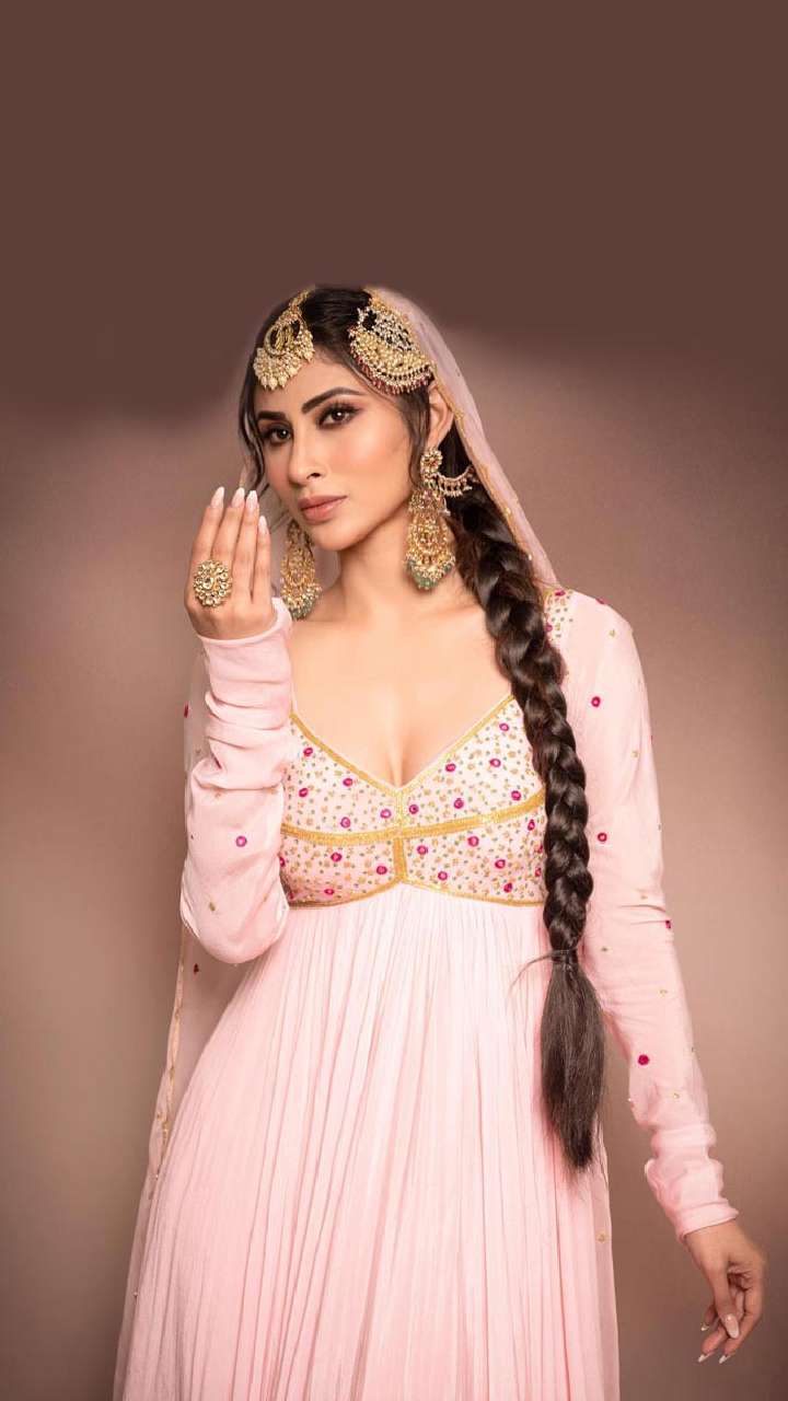 एक्ट्रेस मौनी रॉय यहां अनारकली लुक में नजर आ रही हैं। इनके यह लुक Eid al-Adha के फंक्शन के लिए परपेक्ट हो सकता है।