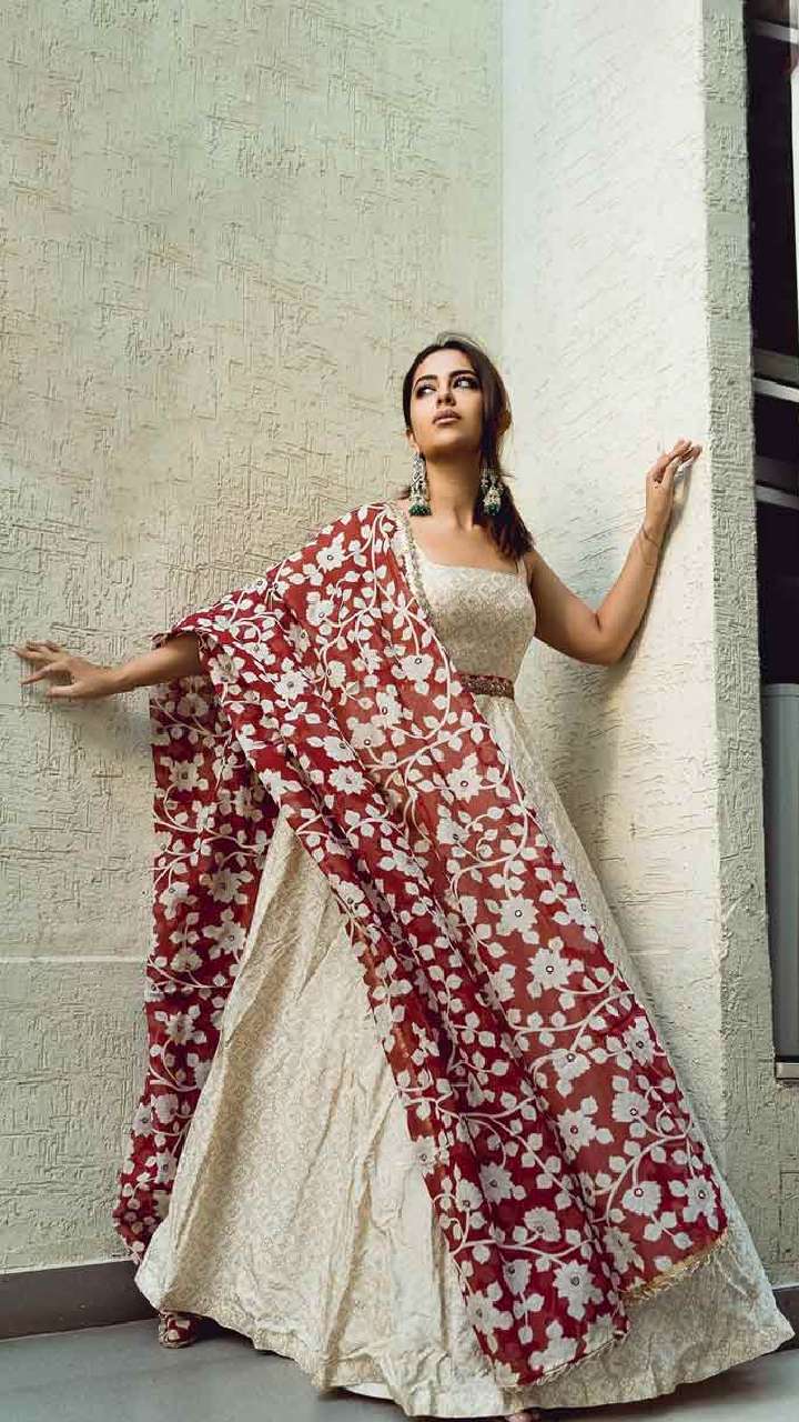 ऑफ व्हाइट सिल्क अनारकली सूट के साथ प्लावर प्रिंट दुपट्टा और कानों में हैवी चांदबालियां पहनी अविका गौर बेहद खूबसूरत लग रही हैं। ट्रेडिशनल इवेंट पर ऐसा परफेक्ट लगेगा।