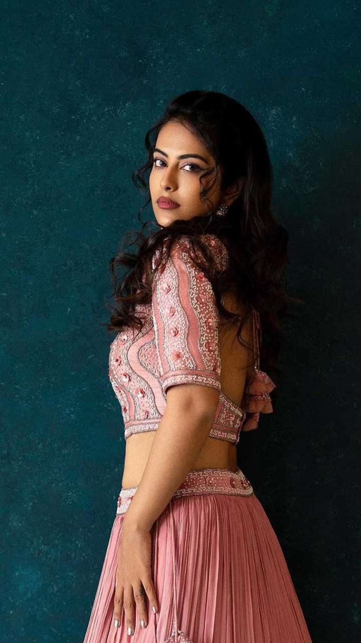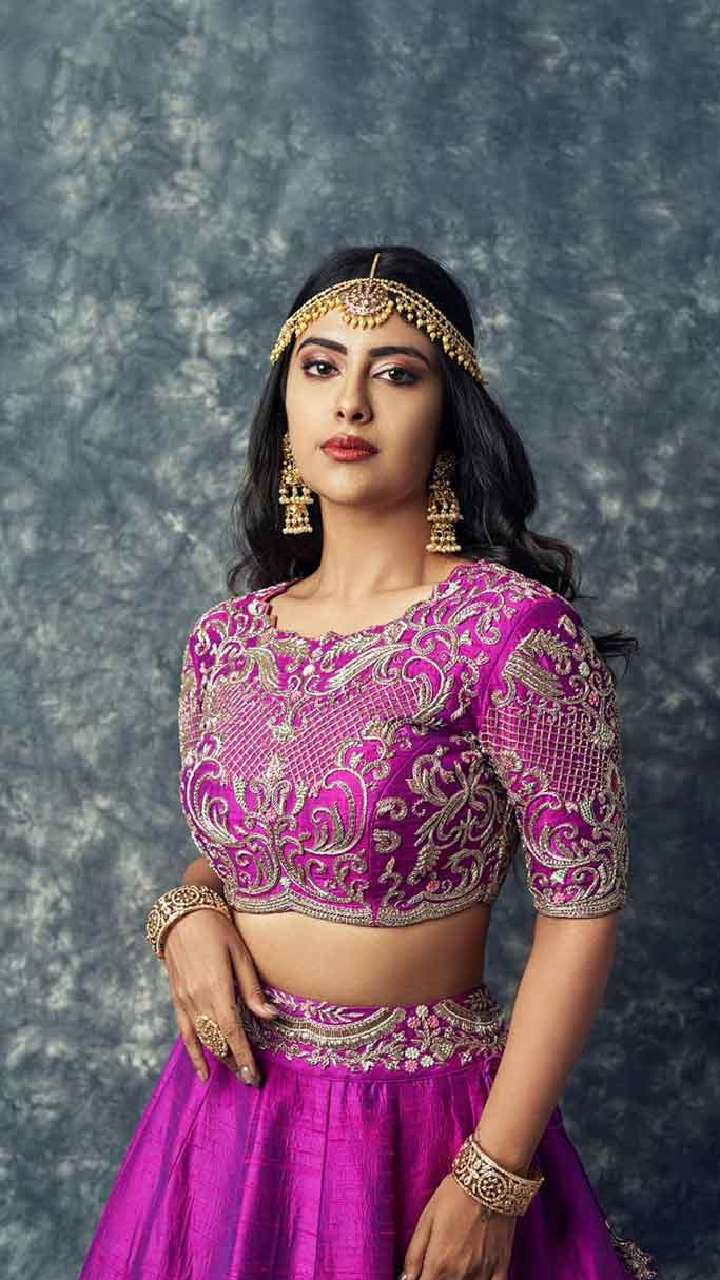 पर्पल सिल्क लहंगा के साथ हैवी वर्क ब्लाउज पहनी अविका बेहद खूब लग रही हैं। इस लुक को पूरा करने के लिए अविका ने टेरा टीका के साथ झुमके भी पहने हैं।