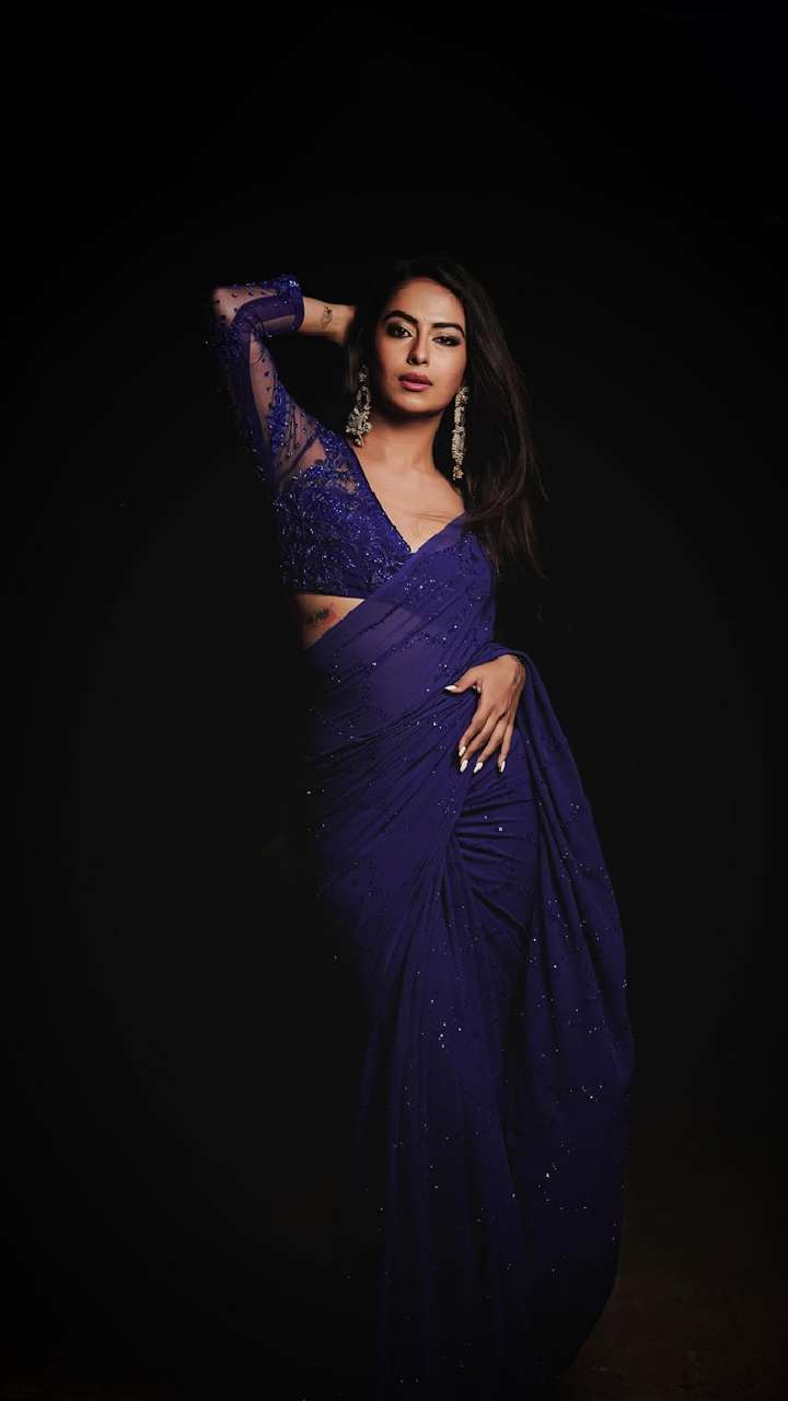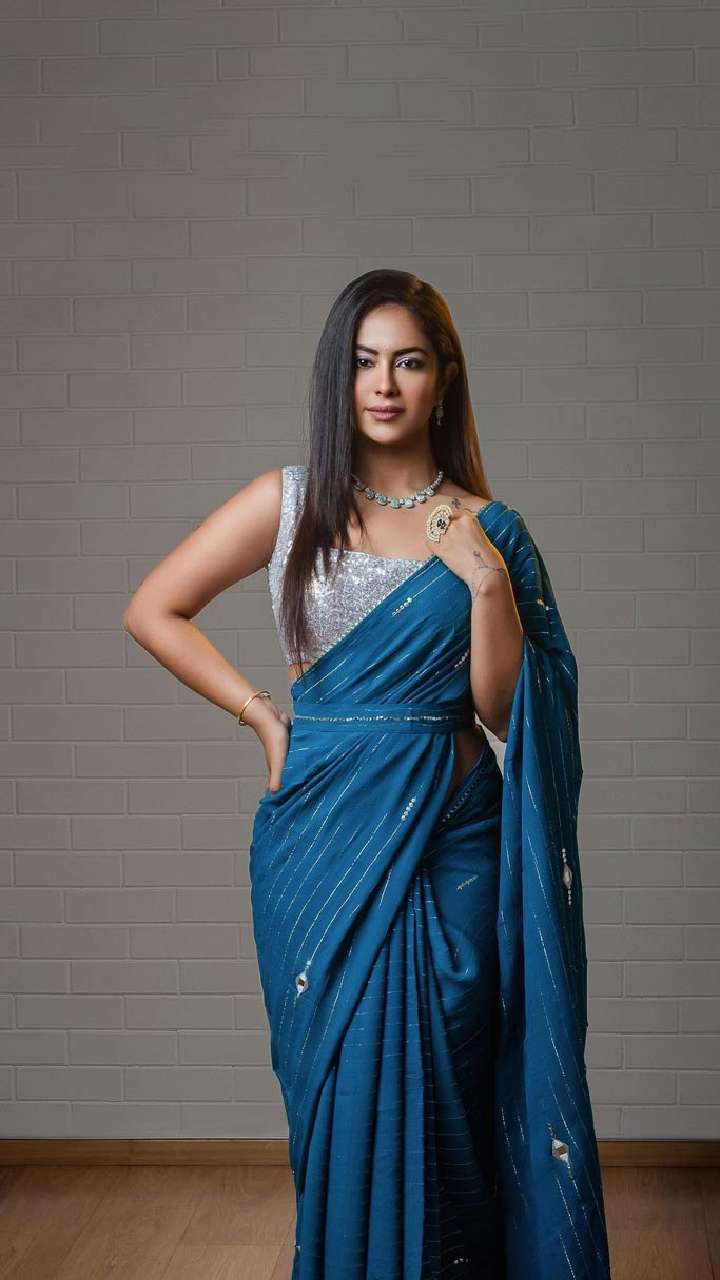 ब्लू कलर की शिमर साड़ी के साथ नेट ब्लाउज पहनी अविका गौर यहां बेहद गॉर्जियस नजर आ रही हैं। पार्टी के लिए ऐसा साड़ी स्टाइल आप भी रिक्रिएट कर सकती हैं।