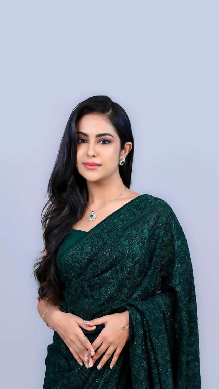 ग्रीन हैवी वर्क शिमर साड़ी के साथ सिंपल मेकअप, स्टोन लोकेट वाला चेन और कानों में टॉप्स पहनी अविका यहां सिंपल दिखने के साथ ही एलिगेंट भी नजर आ रही हैं। शाम की पार्टी के लिए ऐसा लुक खास हो सकता है।