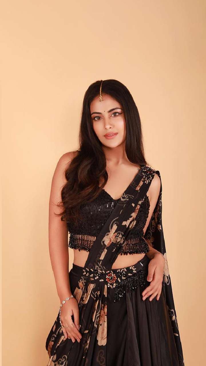 ब्लैक लहंगा के साथ फ्लावर प्रिंट ब्लैक दुपट्टा लिए अविका यहां बेहद क्यूट लग रही हैं। दोस्त की शादी के लिए ऐसा लुक आप भी रिक्रिएट कर सकती हैं।