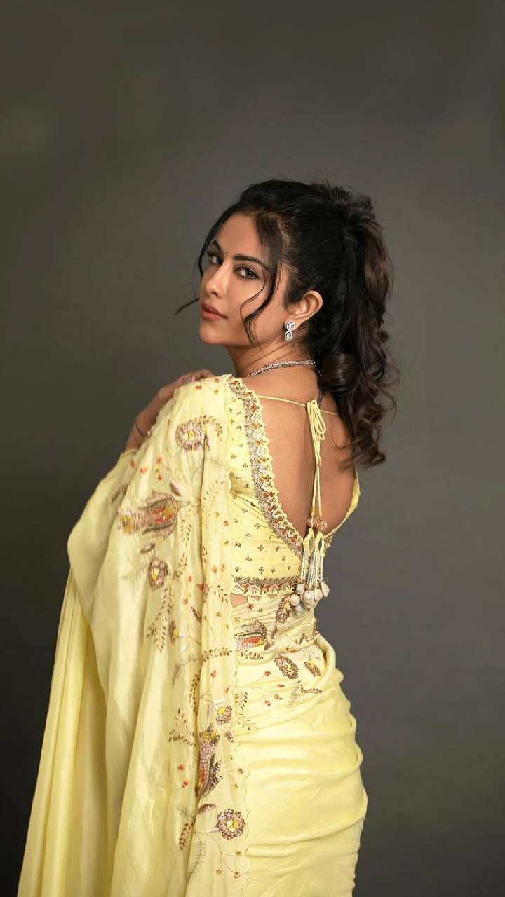 येलो एम्ब्रोइडरी साड़ी के साथ स्टोन ज्वेलरी कैरी किए अविका यहां बेहद अट्रैक्टिव लग रही हैं। ट्रेडिशनल फंक्शन के लिए ऐसा लुक शानदार है।