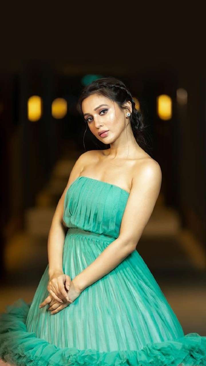 लाइट ग्रीन कलर के ऑफ सॉल्डर बैकलेस गाउन में मिमी किसी अप्सरा से कम नहीं लग रही हैं। पार्टी के लिए ऐसा गाउन ग्रेसफुल लुक देता है।
