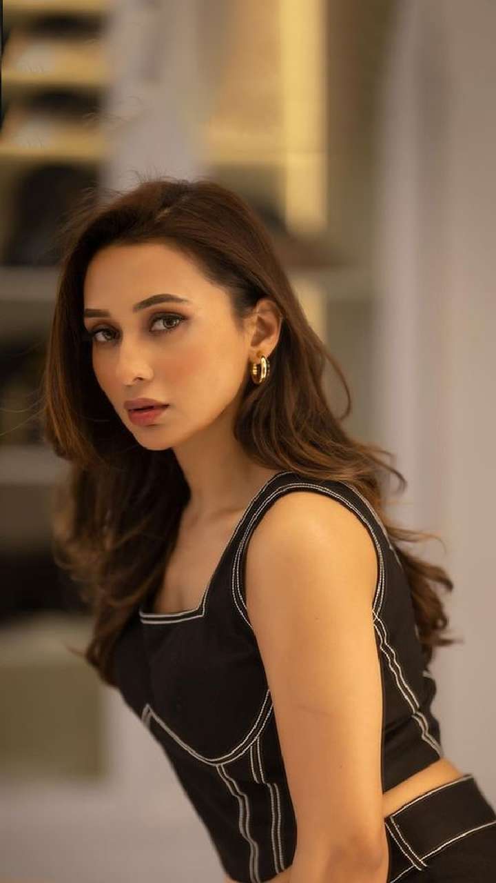 ब्लैक कलर के शिमर पार्टी ड्रेस में मिमी का लुक किलर लग रहा है। नाइट पार्टी के लिए ऐसा लुक शानदार है।