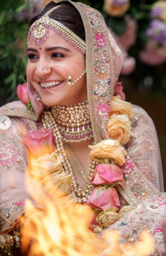 Deepika Padukone went all-in with traditional gold for her wedding look, and her bold golden bridal nath stood out. It was a large hoop with intricate gold detailing and few pearls and stones, making it perfect for brides who want to go full traditional and match the grandeur of a silk saree or a heavy lehenga.