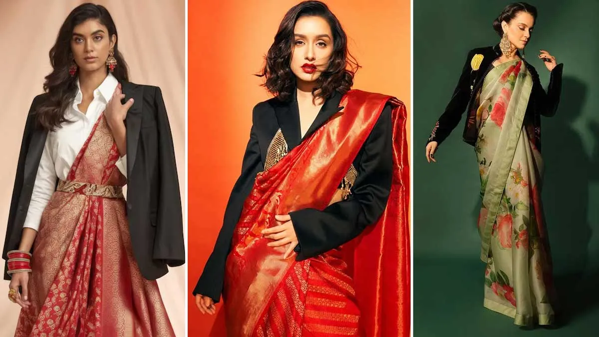 Try these classic ways to rock a blazer with a saree.
