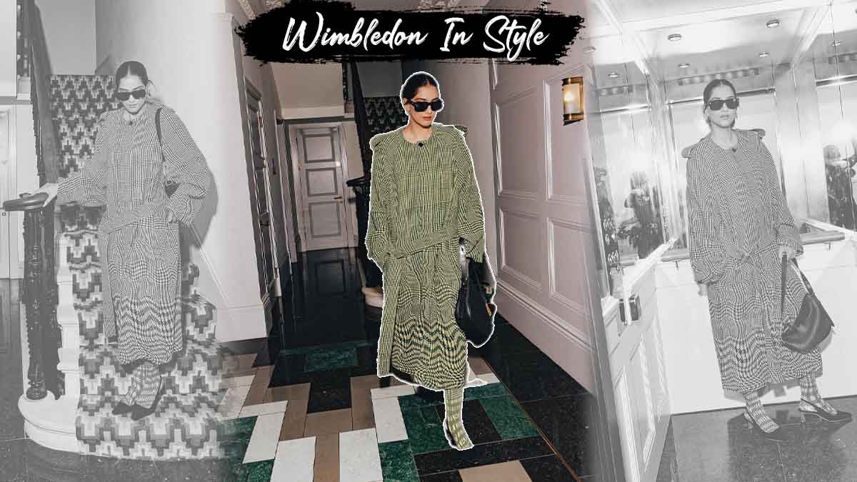 Sonam Kapoor Ahuja was seen wearing an overall gingham trench coat by the British luxury brand Burberry to the Wimbledon 2023 finals. The ‘Raanjhnaa’ actor gave off a regal vibe dressed for her courtside look as she wore a pair of matching gingham tights, classic black hued heels, a signature handbag and a pair of sunglasses to add the finishing touches to the look. Sonam did her hair in a sleek updo and wore a red lip to go. Sonam Kapoor was styled by her younger sister and stylist Rhea Kapoor for the occasion.