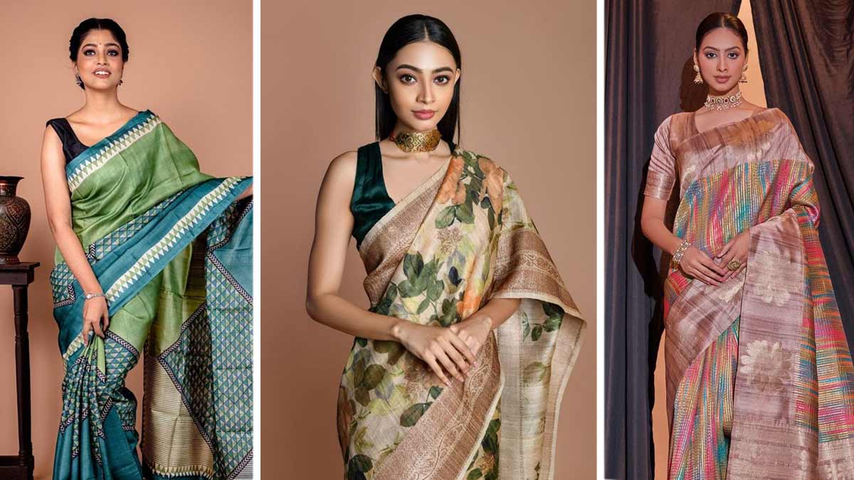 Take inspiration from these five beautiful Tussar silk saree designs to bookmark for special occasions. Here’s the list: