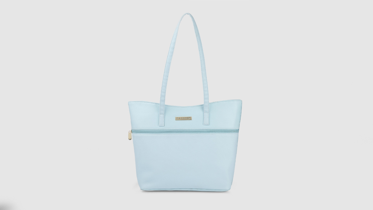 This blue handbag by Caprese comes with a sturdy build and is in solid colour. It has two straps that would allow you to carry it on your shoulders without hassle. It has two outer pockets, two inner pockets and a zip closure. If it gets dirty, you can simply clean it with a dry cloth.