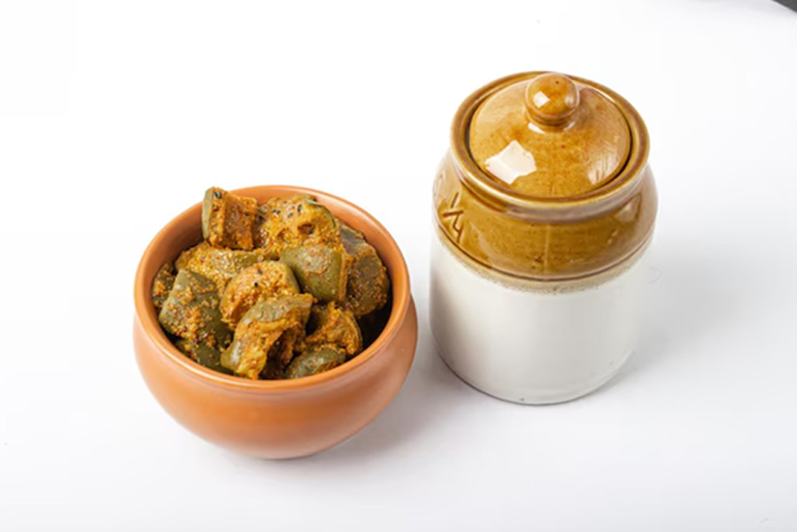 अचार रखने के लिए लोग पके हुए पुराने मिट्टी के बर्तनों का उपयोग करते थे। नए मिट्टी के बर्तन में अचार रखने से अचार का रस या तेल मिट्टी सोख लेता था, इसलिए पुराने और पके हुए मिट्टी का बर्तन बेस्ट होता है। मिट्टी के बर्तन में अचार रखने से अचार के पोषण मूल्य भी बढ़ते हैं और खराब भी नहीं होता।