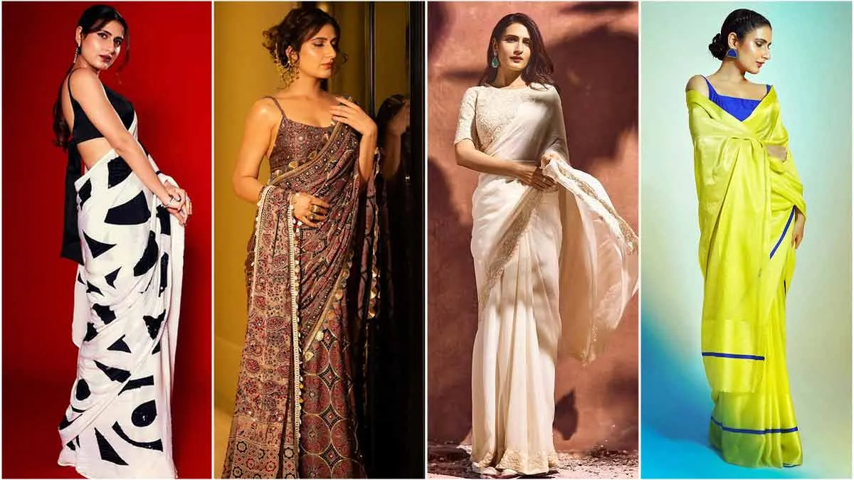 दंगल फिल्म के मशहूर हुई एक्ट्रेस फातिमा सना शेख अपनी एक्टिंग और फैशन की वजह से हर समय ट्रेंड में रहती हैं। जहां उनके इंस्टाग्राम अकाउंट पर उनके कई सारे आउटफिट लुक लोग खूब पसंद करते हैं तो वहीं इनमें से उनके कुछ साड़ी लुक भी है। इन साड़ी लुक में एक्ट्रेस बेहद ही खूबसूरत और स्टाइलिश नजर आ रही हैं। इस तरह की साड़ी आप भी पार्टी या किसी खास मौके पर स्टाइल कर सकती हैं और इन साड़ी में आपका लुक बेहद ही खूबसूरत नजर आएगा।