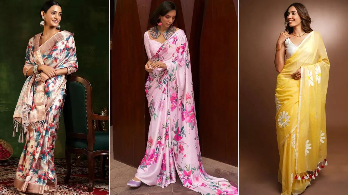 साड़ी पहनना हम सभी पसंद करते हैं और इसके लिए हम लेटेस्ट डिजाइंस को ही चुनते हैं। एवरग्रीन फैशन और डिजाइन की बात करें तो फ्लोरल पैटर्न को सबसे ज्यादा पसंद किया जाने लगा है। फ्लोरल में आपको कई तरह के वर्क और कारीगरी देखने को मिल जाएगी।