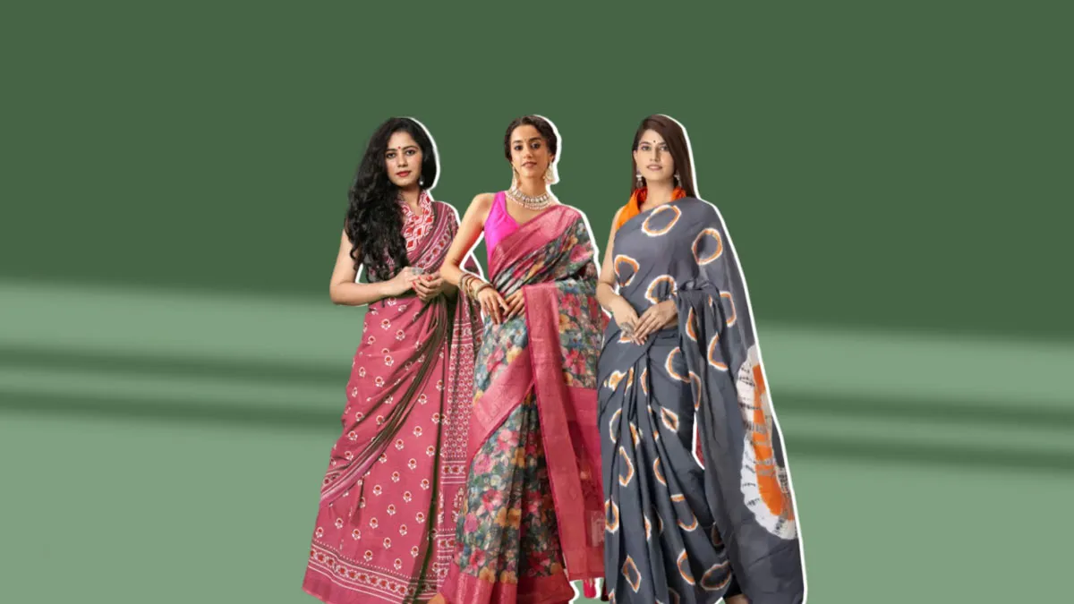 अगर आप कुछ न्यू ट्राई करना चाहती हैं तो आप इस तरह की प्रिंट वाली कॉटन साड़ी वियर कर सकती हैं। यह साड़ी न्यू लुक पाने के लिए बेस्ट है और इस साड़ी में आप स्टाइलिश भी नजर आएंगी। इस तरह की साड़ी को आप ऑनलाइन और ऑफलाइन दोनों ही जगहों से 1,000 से 2,000 रुपये में खरीद सकती हैं और ये साड़ी आपको कई सारे कलर और डिजाइन ऑप्शन के साथ मिल जाएंगी।