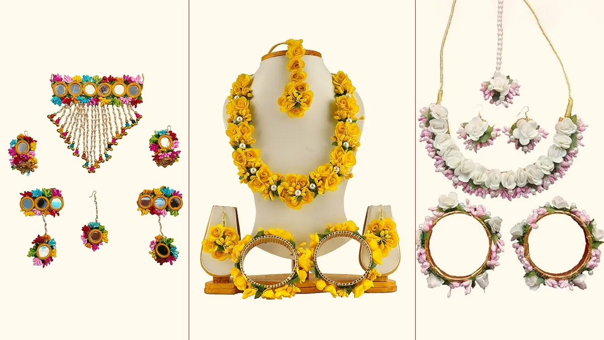 अगर आप भी शादी में होने वाली हल्दी सेरेमनी में पहनने के लिए फ्लावर ज्वेलरी सेट तलाश रही हैं, तो अब आपको फिक्र करने के जरूरत नहीं हैं। आपके लिए ये खूबसूरत फ्लावर ज्वेलरी सेट बेस्ट ऑप्शन हो सकता है। पीले कलर का आर्टिफीसियल फूलों से तैयार ये ज्वेलरी सेट आप न सिर्फ हल्दी सेरेमनी में बल्कि इसे आप मेहंदी या मामेरे की रस्म के वक्त भी पहन सकती हैं। यह सेट आपको ऑनलाइन और ऑफलाइन दोनों जगह मिल जाएगा।