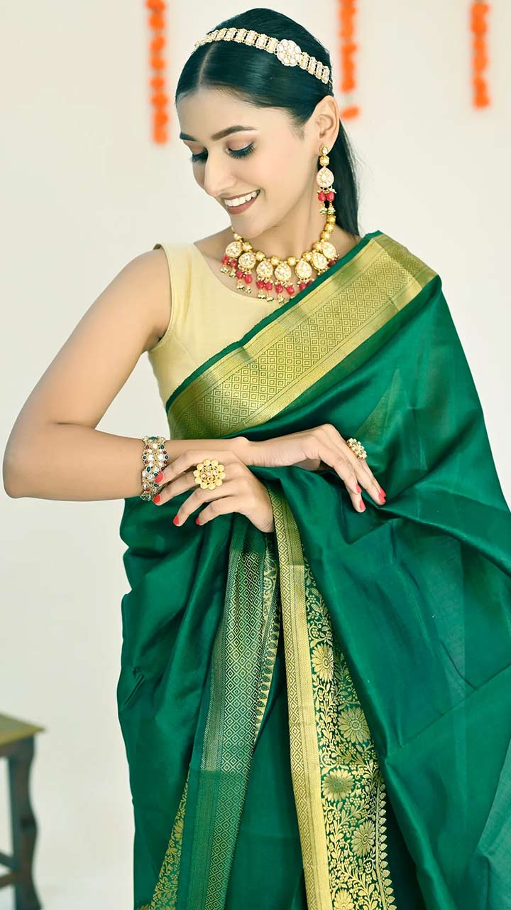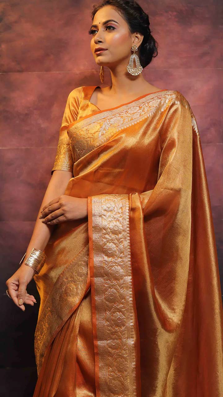 अगर आपकी हाइट लंबी है, तो आप चौड़े बॉर्डर वाली साड़ी को स्टाइल कर सकती हैं। इस तरह की साड़ी जब प्लीट्स में बांधी जाती है, तो अच्छी लगती है। साथ ही इसमें अगर हल्का वर्क हो तो वो साड़ी ड्रेपिंग के बाद और भी ज्यादा सुंदर दिखती है। आप इस तरह की साड़ी को स्टाइल कर सकती हैं। इससे आपका लुक भी अच्छा लगेगा। साथ ही, आप महारानियों से कम नहीं लगेगी। इस तरह के बॉर्डर आपको बनारसी सिल्क साड़ी में मिल जाएंगे। इस तरह की साड़ी आपको 2,000 से 3000 रुपये में मिल जाएगी।