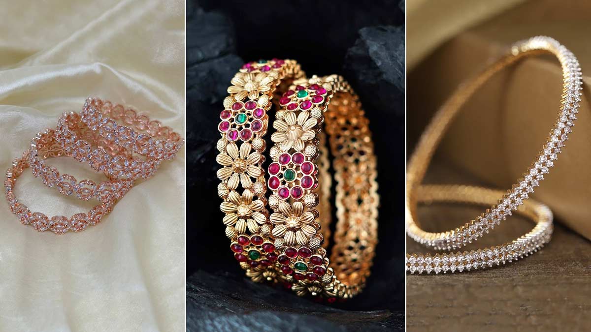 अगर आप महंगे कंगन नहीं पहनना चाहती हैं या फिर भारी कंगन को कैरी करने में दिक्कत है, तो इस तरह के सिंगल या डबल कंगन हाथों में पहन सकती हैं। साड़ी से लेकर सूट तक के साथ में मिनिमल डिजाइन के ये कंगन आपके हाथों की शोभा बढ़ाने में मदद करेंगे। देखने में यह काफी मॉडर्न लुक भी देते हैं। इस तरह के कंगन आपको सिल्वर, शैम्पेन गोल्ड जैसे कई ऑप्शन में मिल जाएंगे। इस तरह के कंगन बिना चूड़ी के भी आपको परफेक्ट लुक देंगे। हालांकि, अगर आप चूड़ी के साथ इन्हें स्टाइल करेंगी तो भी ये खूबसूरत लगेंगे।