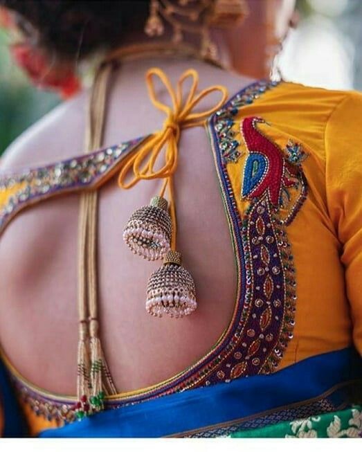 अगर आपके पास बड़े वाले झुमका हैं और आप उसे ज्यादा नहीं पहनती हैं, तो उसका इस्तेमाल आप ब्लाउज की बैक को सजाने में कर सकती हैं। इसके लिए आप ब्लाउज की डोरी में अपनी झुमका को बांध सकती हैं। अगर आप चाहें तो डोरी को बीच में लगवाने की जगह ब्लाउज की बैक में साइड पर लगवा दें। इससे आपके झुमके काम में भी आ जाएंगे और ब्लाउज को भी डिजाइनर लुक मिल जाएगा।