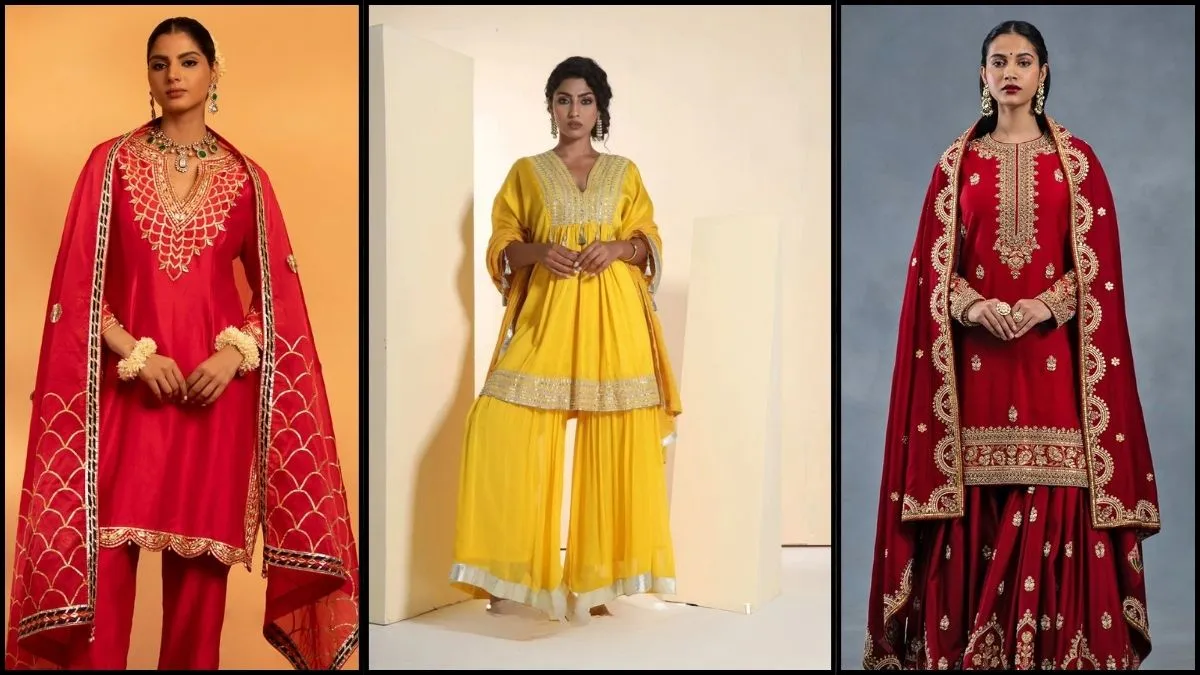 अगर आप फ्यूजन स्टाइल चाहती हैं, तो कलीदार कुर्ता सेट्स आपके लिए एक बेहतरीन विकल्प हो सकते हैं। कलीदार कुर्ते में घेर होटा है, जिससे ये पहनने में बेहद स्टाइलिश और आकर्षक दिखते हैं। गोटा-पट्टी का काम इस तरह के कुर्तों को डिजाइनर और हैवी बनाता है। कलीदार कुर्ते विशेष रूप से उन महिलाओं के लिए उपयुक्त होते हैं, जो पारंपरिक और मॉडर्न स्टाइल का मिश्रण चाहती हैं। इस तरह के कुर्ते करवा चौथ जैसे त्योहार पर पहनने के लिए बहुत ही आकर्षक होते हैं और आपको एक शाही और अनोखा लुक प्रदान करते हैं।