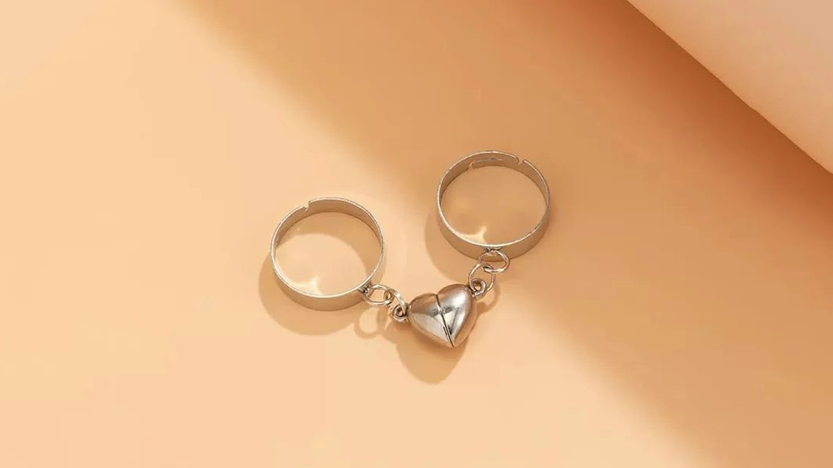 रिंग के कुछ डिजाइन होते हैं जो हमें एक बार में देखते ही पसंद आ जाते हैं। उन्हीं में से एक है यह दिल वाला मैगनेटरिंग डिजाइन। आप इसे अपने पार्टनर के लिए खरीद सकती हैं। यह दिल अलग हो जाते हैं, और हाथों के पास आने पर यह एक दूसरे से जुड़ जाते हैं। यह रिंग बहुत ही खूबसूरत है और आपके हाथों में भी उतनी ही खूबसूरत लगेगी।