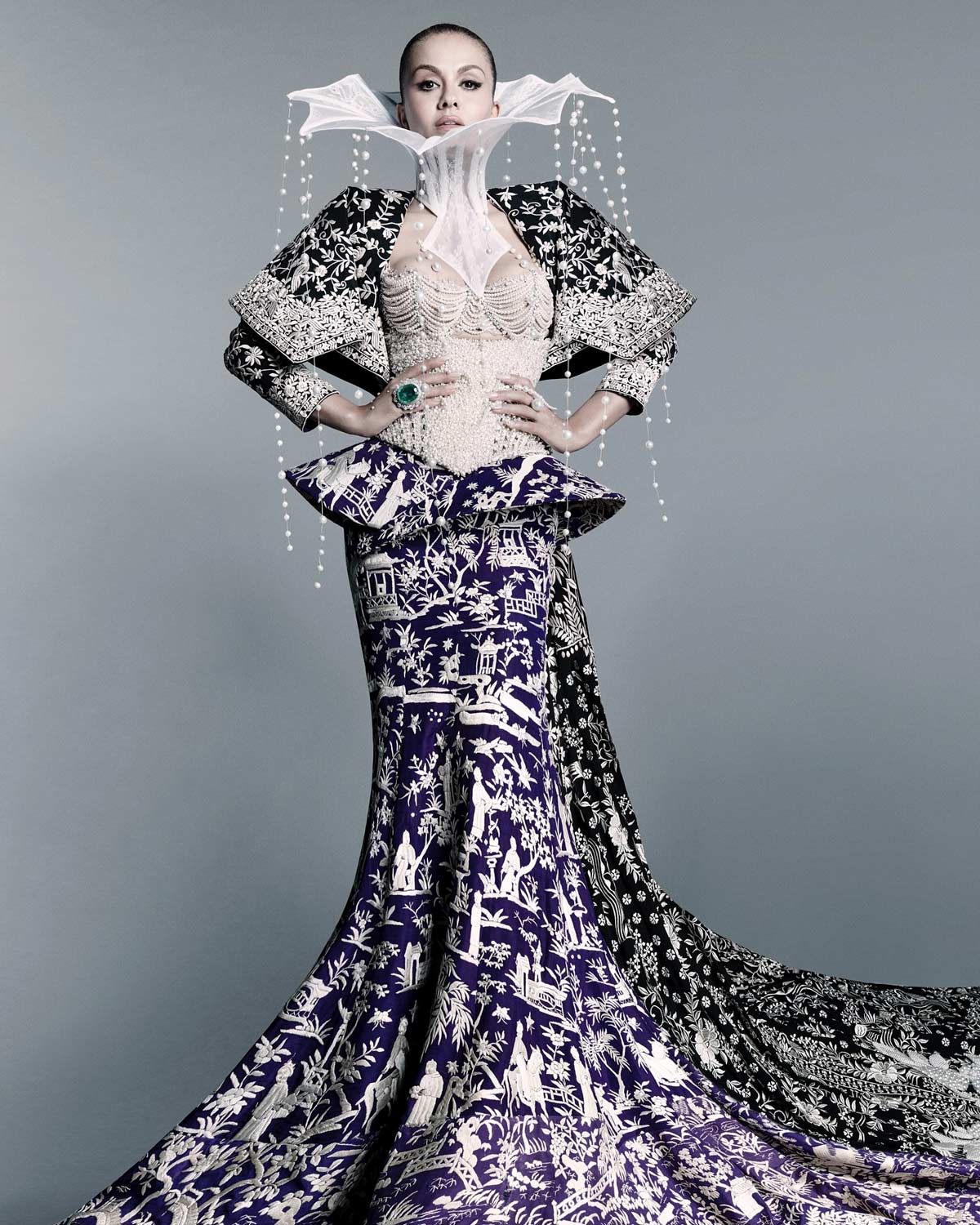 इस खूबसूरत गहरे नीले और काले रंग में सजे फ्लोर-स्वीपिंग गाउन को पहनकर नताशा ने मेट गाला के पुरे फंक्शन में जान डाल दी। नताशा ने अपने लुक को शानदार बनाने के लिए अपनी उंगली में एक खूबसूरत ग्रीन स्टोन रिंग पहनी थी। इसके अलावा उन्होंने अपना सटल मेकअप चुना था। मेट गाला 2025 में अपने बोल्ड लुक से नताशा ने वाकई सभी का दिल जीत लिया था।