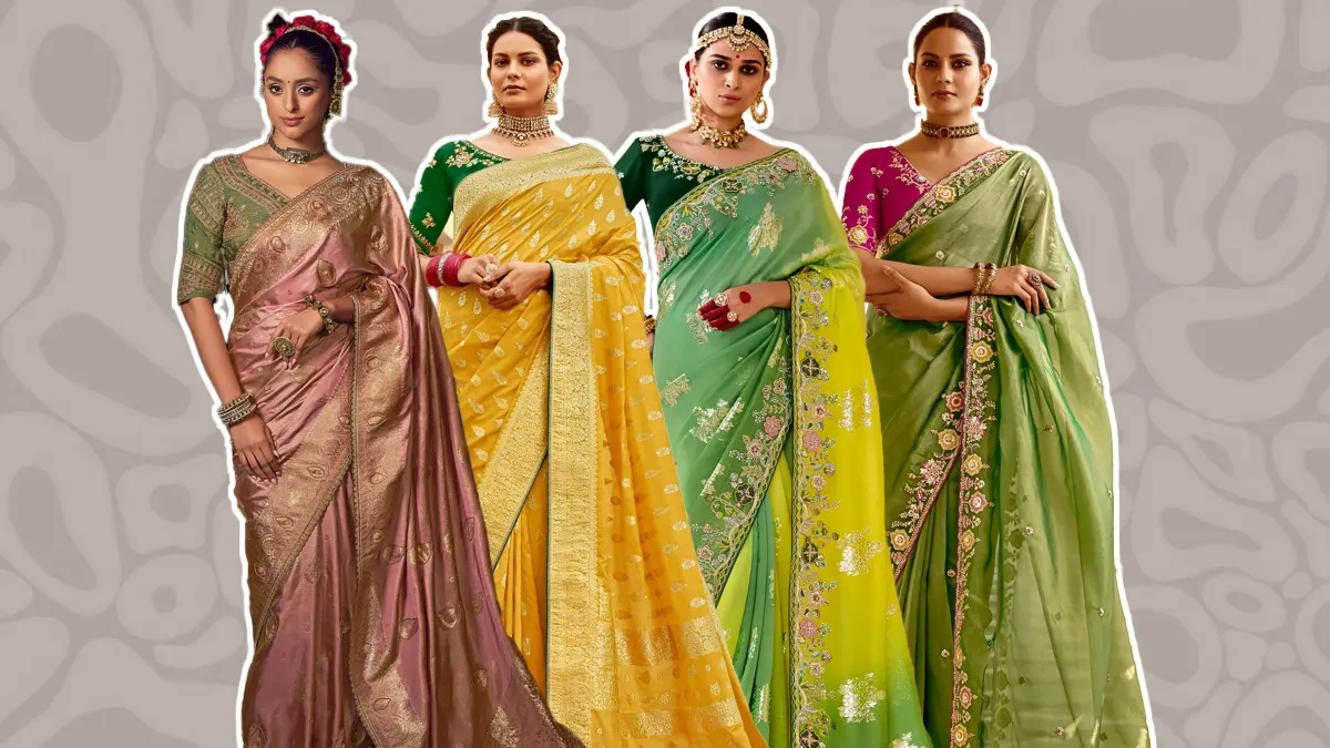 आप इस खूबसूरत बनारसी सिल्क लॉन ग्रीन साड़ी को भी किसी भी त्यौहार पर पहन सकती हैं। ऐसी साड़ी आपकी खूबसूरती में चार चांद लगा देगी। इस साड़ी की खूबसूरती देख हर कोई आपसे इसके बारे में पूछने पर मजबूर हो जाएगा। आप इस साड़ी के साथ मैचिंग ब्लाउज, एक्सेसरीज और मेकअप कर अपने लुक को पूरा कर सकती हैं। यह साड़ी आपको ऑनलाइन मिल सकती है या आप इसे ऑफलाइन भी तलाश सकती हैं।