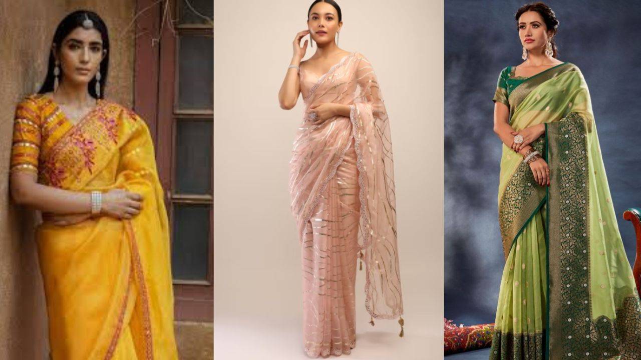 साड़ी एवरग्रीन फैशन हैं और इसी वजह से कई सारे फंक्शन के लिए महिलाओं की पहली चॉइस साड़ी होती है। बाजार में आपको साड़ी के कई सारे ऑप्शन मिल जाएंगे जिन्हें आप कई सारे खास मौकों पर पहन सकती है लेकिन अगर आप प्री-वेडिंग फंक्शन के लिए एक बेस्ट साड़ी की खोज में हैं तो आप आर्टिकल की मदद से एक परफेक्ट साड़ी का चुनाव कर सकती है। इस आर्टिकल में हम आपको कुछ लेटेस्ट डिजाइन वाली ऑर्गेंजा साड़ी दिखाएंगे जिन्हें आप प्री-वेडिंग फंक्शन के दौरान वियर कर सकती हैं।