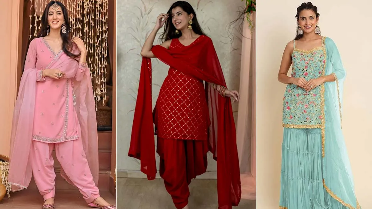 करवा चौथ पर सभी महिलाएं बेट्स नजर आना चाहती हैं और इसके लिए बेस्ट आउटफिट का चुनाव करती हैं। वहीं अगर आप इस मौके पर देसी लुक चाहती हैं तो आप ये न्यू डिजाइंस के पंजाबी सूट का चुनाव कर सकती हैं। इस आर्टिकल में हम आपको कुछ लेटेस्ट डिजाइन वाले पंजाबी सूट दिखाएंगे। यह पंजाबी सूट देसी लुक पाने के लिए बेस्ट ऑप्शन हैं और इस तरह आउटफिट में भीड़ से अलग नजर आएंगी।