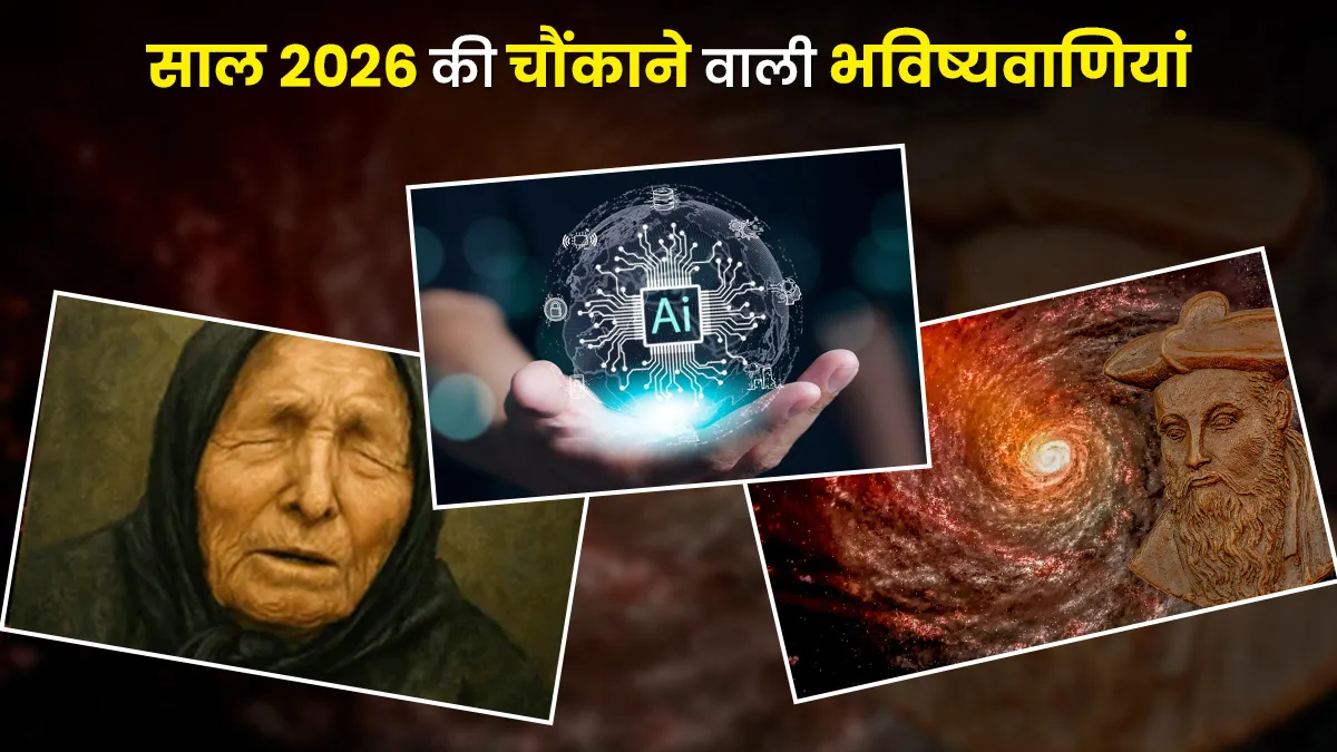 साल 2025 अपने अंतिम पड़ाव पर है और कुछ ही दिनों में नए साल का आगाज़ होने वाला है। साल 2025 में घटने वाली कई घटनाओं ने जहां लोगों को जीवन की अहमियत सिखाई और तकनीक, राजनीति, पर्यावरण और ग्लोबल इकोनॉमी से जुड़े कई बदलाव किए, वहीं सबसे ज्यादा चर्चा में रहा AI का जीवन में बदलाव करना। यूं कहा जाए कि AI ने एक आम व्यक्ति की जिंदगी ही बदल दी। इस साल कहीं युद्ध की आग सुलगती रही तो कहीं महंगाई ने आम लोगों की कमर तोड़ी। ऐसे में अब पूरी दुनिया की नजरें साल 2026 पर टिकी हैं। सभी के मन में एक यही सवाल है कि क्याद साल 2026 भी ऐसे कुछ हैरान करने वाले बदलाव लाएगा या फिर लोगों को कुछ और चुनौतियों का सामना करना पड़ेगा। ऐसे कई सवालों के लिए बाबा वैंगा, नास्त्रेदमस और AI ने कुछ ऐसी भविष्यवाणियां की हैं जो आपको हैरान कर सकती हैं। यही नहीं इन भविष्यवाणियों में दुनिया के खत्म होने तक का जिक्र किया गया है। यही नहीं साल 2026 को एलियन अटैक का साल भी बताया जा रहा है। आइए आपको बताते हैं इन भविष्यवक्ताओं की कुछ ऐसी ही भविष्यवाणियों के बारे में।