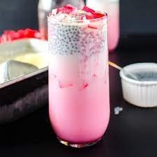 Ingredients: eight grams of Sabja seeds, 75 grams of Falooda Sev, half a kilogram of water, 86 grams of rose syrup, 850 grams of milk, 50 grams of Malai Kulfi, and 15 grams of mixed nuts.