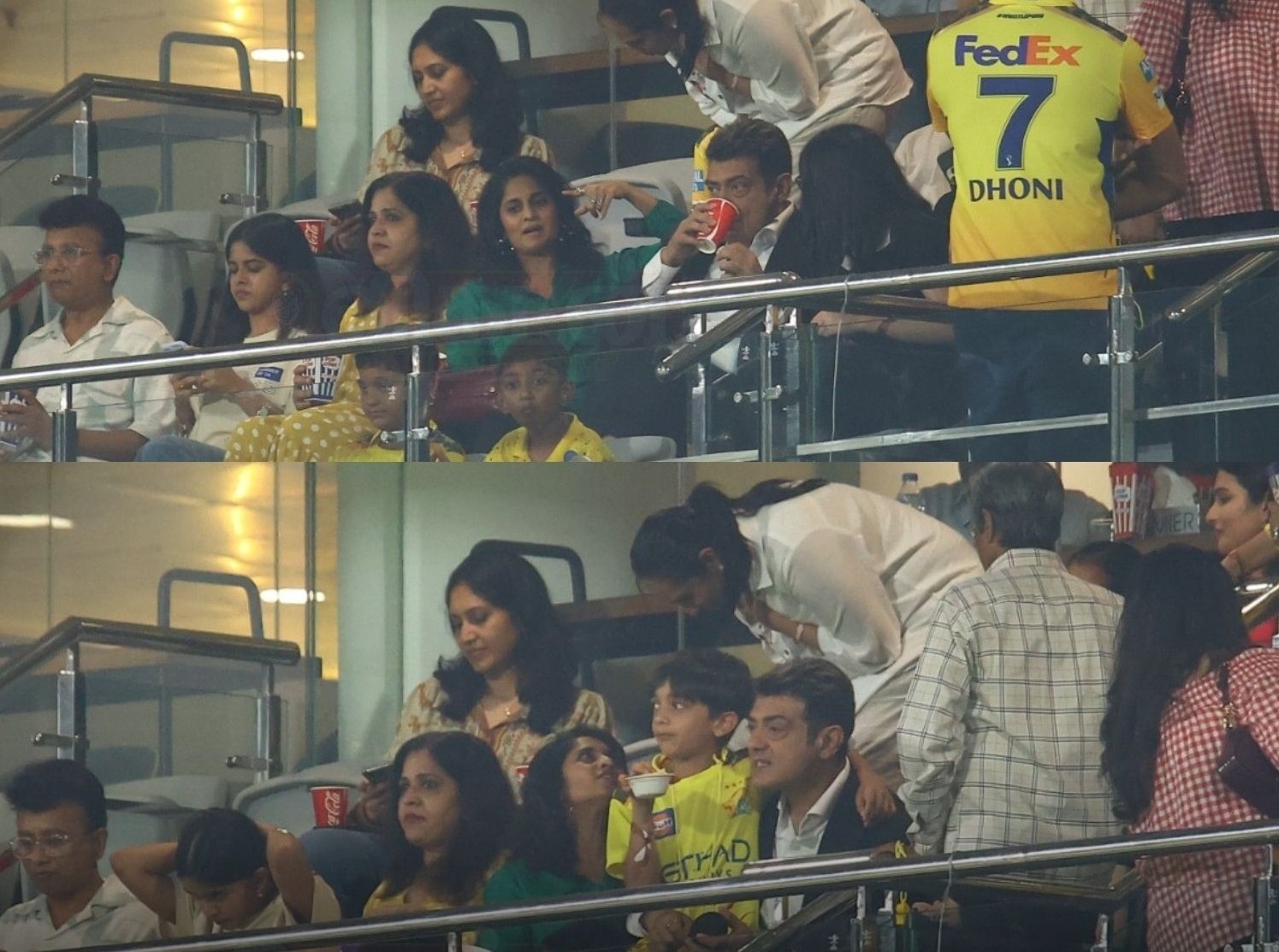 பொதுவெளியில் தலை காட்டாத நடிகர் அஜித் பல வருடங்களுக்கு பிறகு முதல் முறையாக பொதுமக்கள் அதிகம் கூடும் ஐபிஎல் போட்டியை நேரில் கண்டு களித்துள்ளார். சேப்பாக்கம் மைதானத்தில் சென்னை - ஐதராபாத் அணிகளுக்கு இடையிலான போட்டியை குடும்பத்தினருடன் கண்டு ரசித்தார். அப்போது மைதானத்தில் தல தல கோஷம் அதிர்ந்தது. ஏற்கனவே தோனியை கிரிக்கெட் ரசிகர்கள் செல்லமாக தல தோனி என அழைக்கும் நிலையில் பல வருடங்களாக தமிழ் சினிமா ரசிகர்களால் தல என்றழைக்கப்படும் அஜித்குமார் ஒரே இடத்தில் சங்கமித்ததால் மைதானத்தில் சத்தம் விண்ணை பிழந்தது.