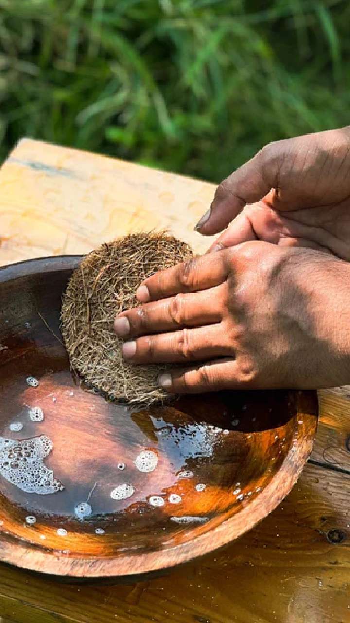 தேங்காய் நாரை பாத்திரம் அல்லது பித்தளை பொருட்களை சுத்தம் செய்ய ஸ்க்ரப்பராக பயன்படுத்தலாம். தேங்காய் நார் பாத்திரங்களில் படிந்துள்ள பிடிவாதமான கறைகளை அகற்ற உதவுகிறது.
