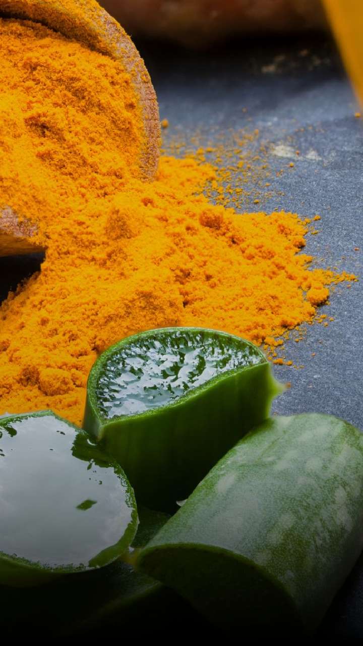 Applying aloe vera with a pinch of turmeric powder can be a game changer for oily skin. This serum will help reduce frequent breakouts due to oily skin.
