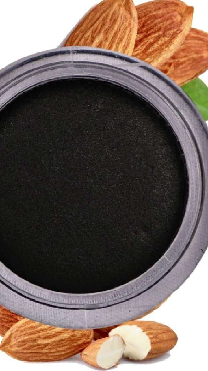 Soak almonds for 8-9 hours, peel them and let them dry. Place the small stainless steel or iron plate over a flame. Put the dried almonds on the plate and heat them gently until they become black.