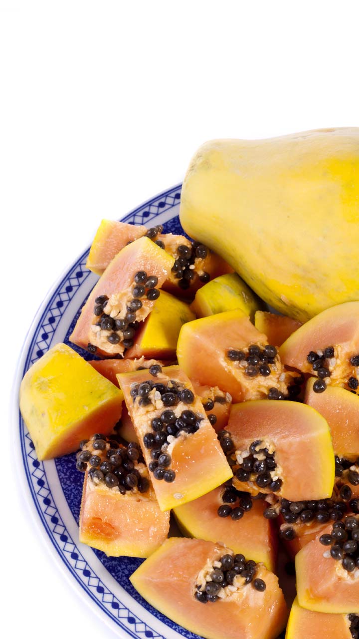 Rub a papaya cube all over your face for 10 minutes, then wash it off. Your skin will feel silky, smooth, and glowing.