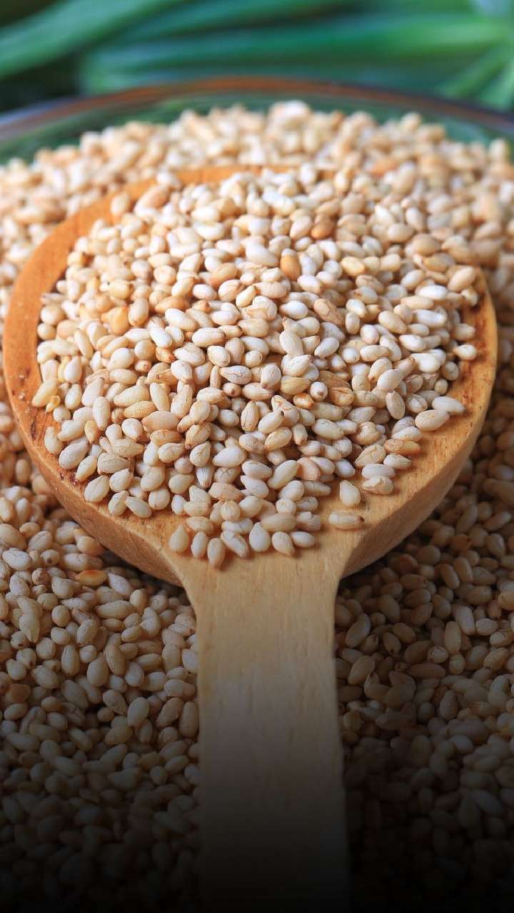 These tiny sesame seeds are packed with antioxidants. They also contain Vitamin E, fatty acids and phytosterols, that help stimulate hair growth and keep your locks smooth and baby soft.