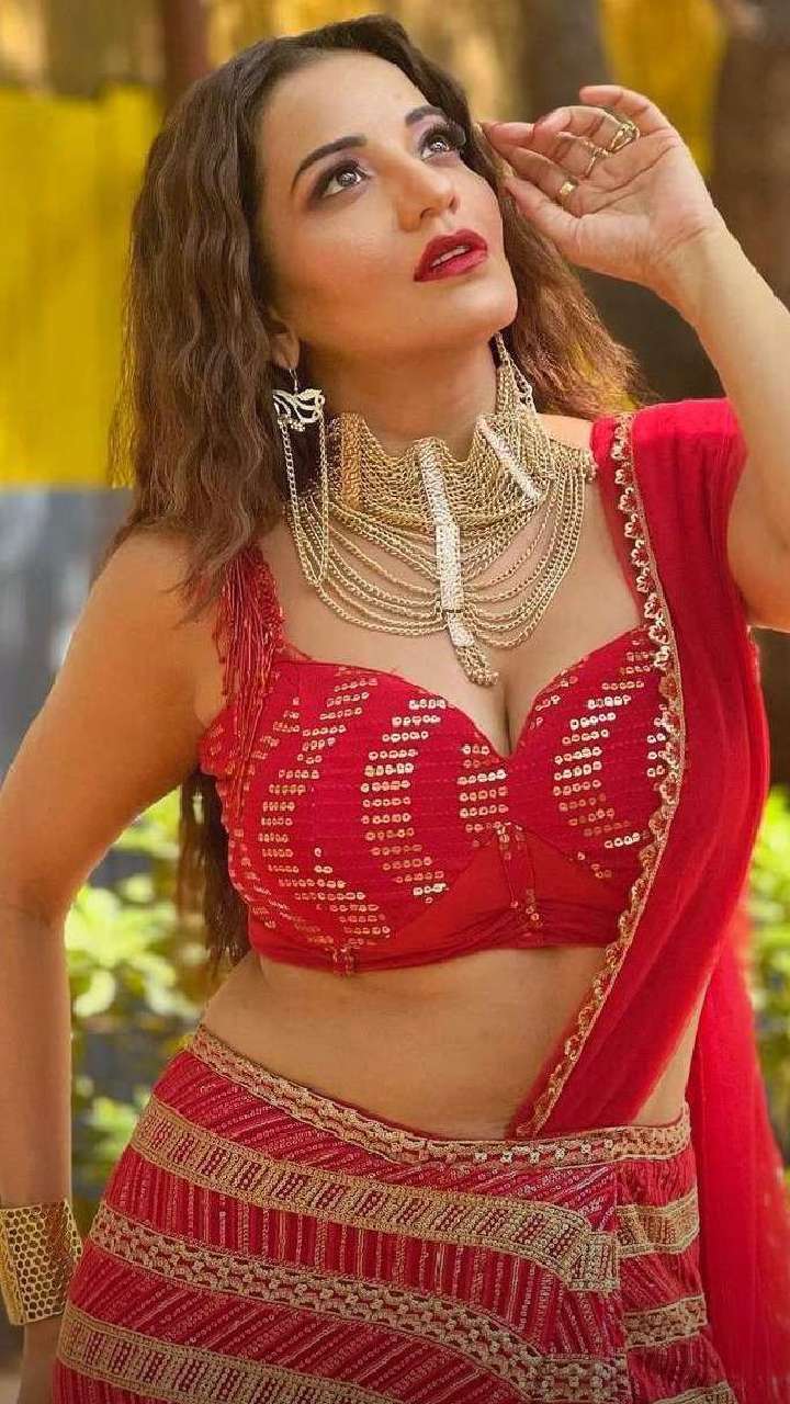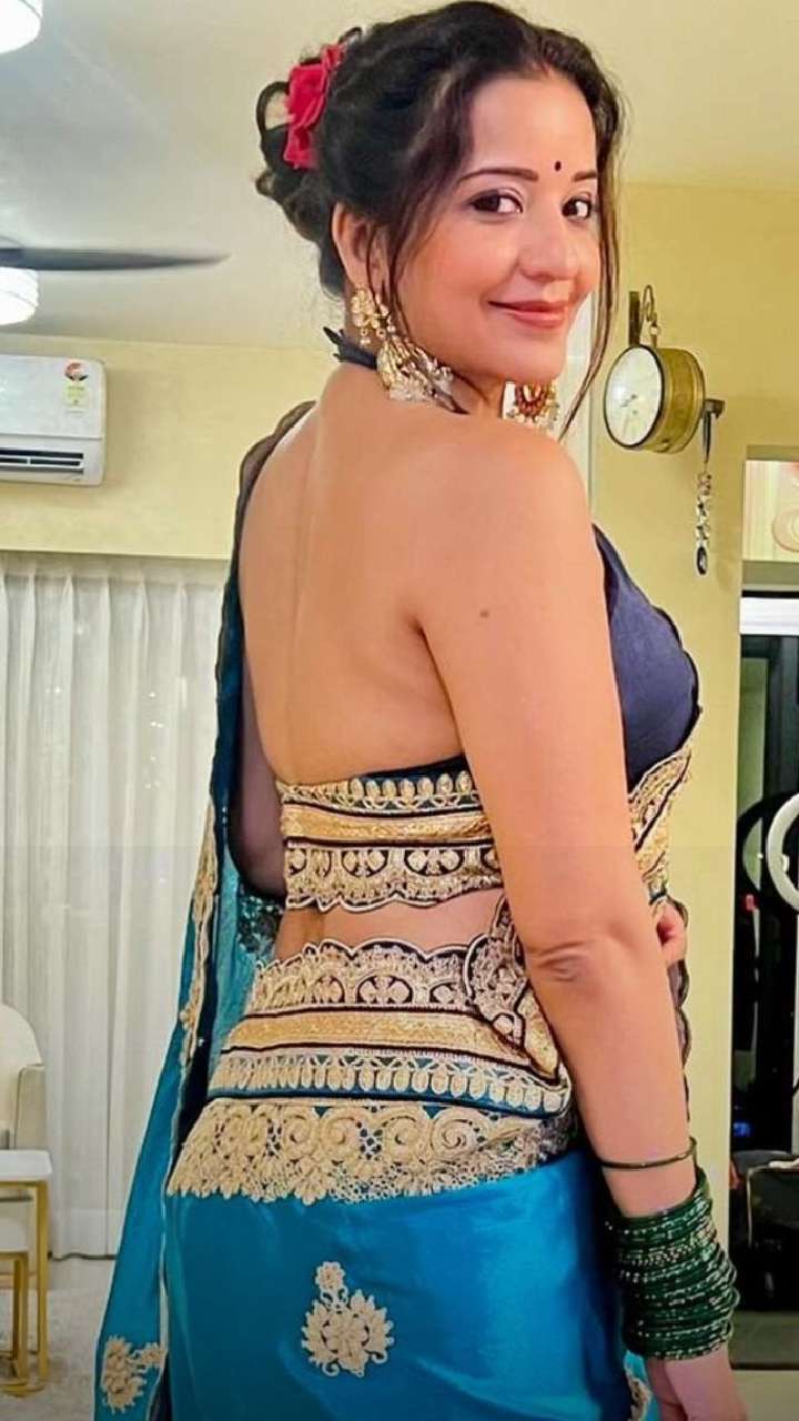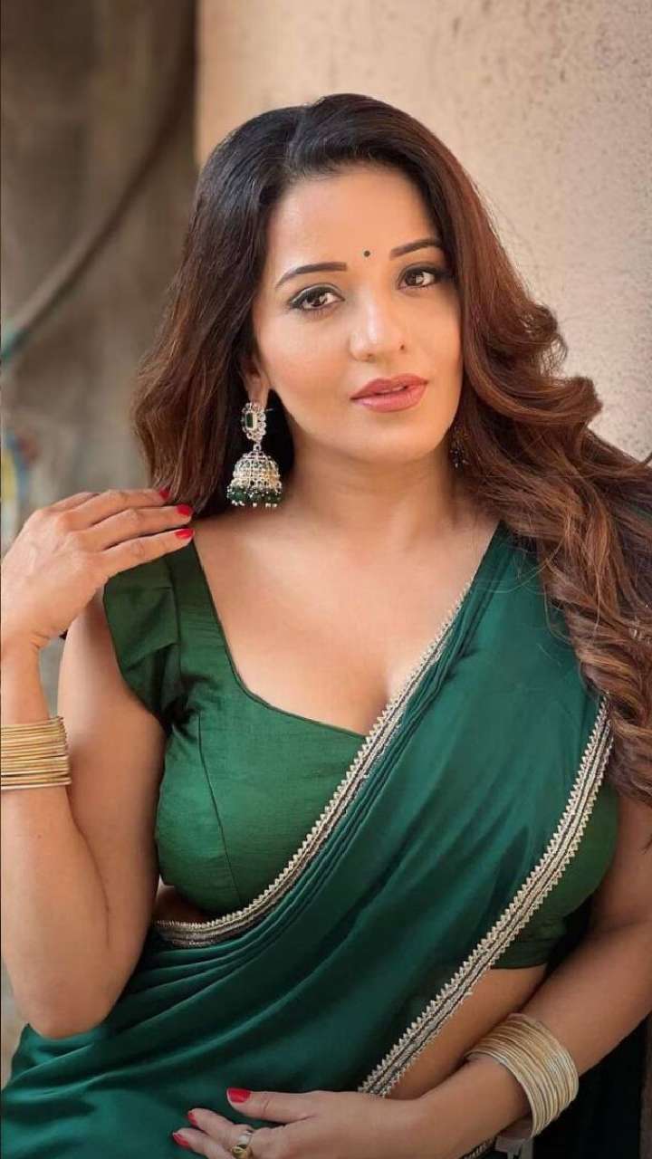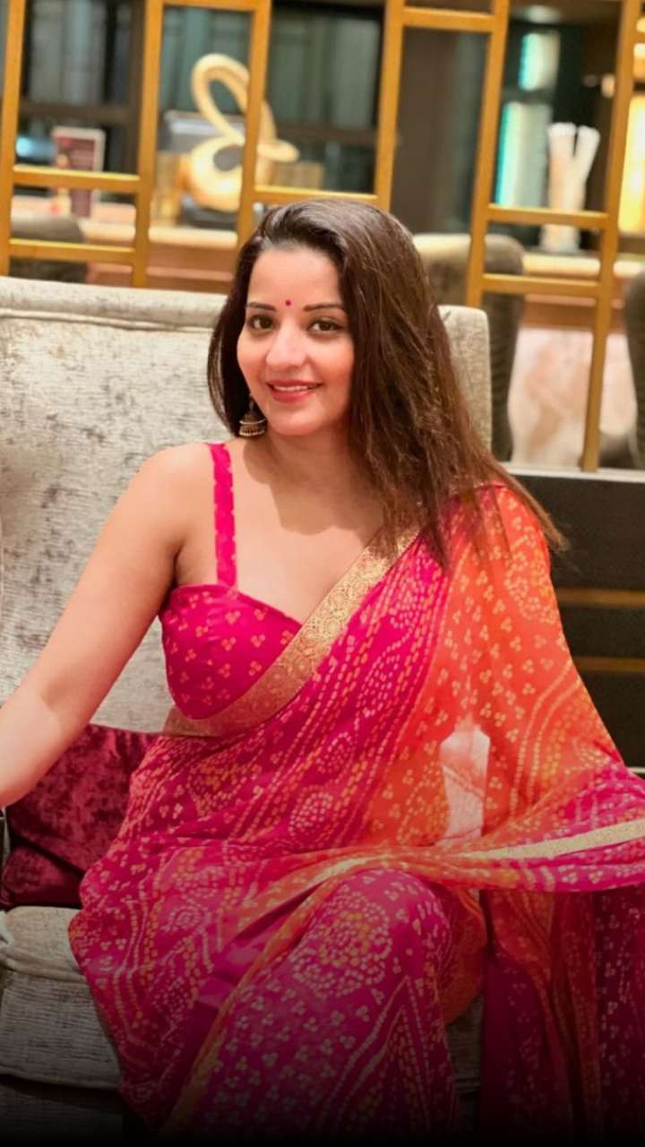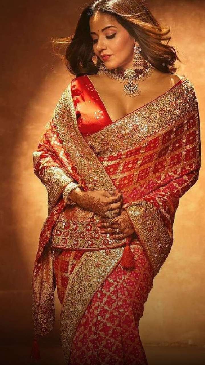 Monalisa turned up the heat in her traditional look. She wore a leaf neckline embroidered blouse and accessorised her look with long earrings.