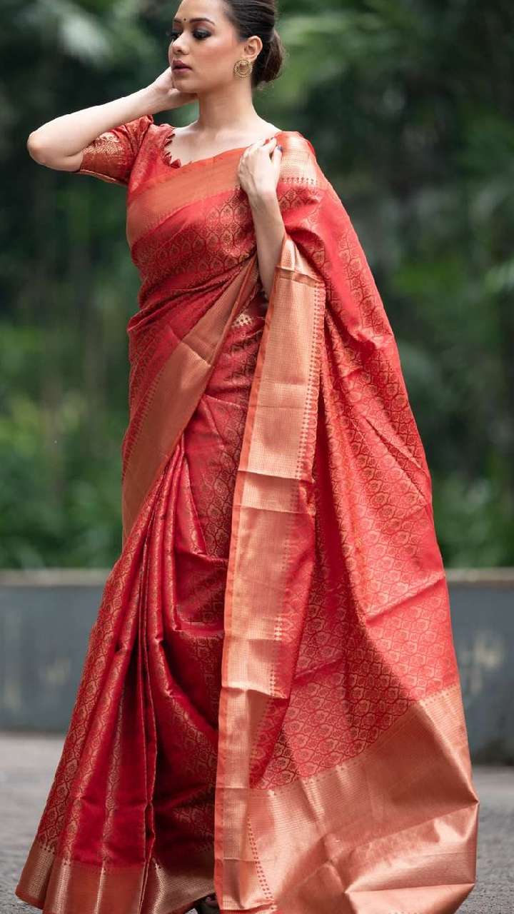 Want to look an epitome of grace and opulence? We've got you covered. Here’s a self-curated list of five regal red silk Banarasi sarees to look ethereal. Take a look!