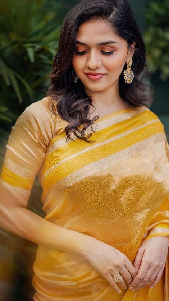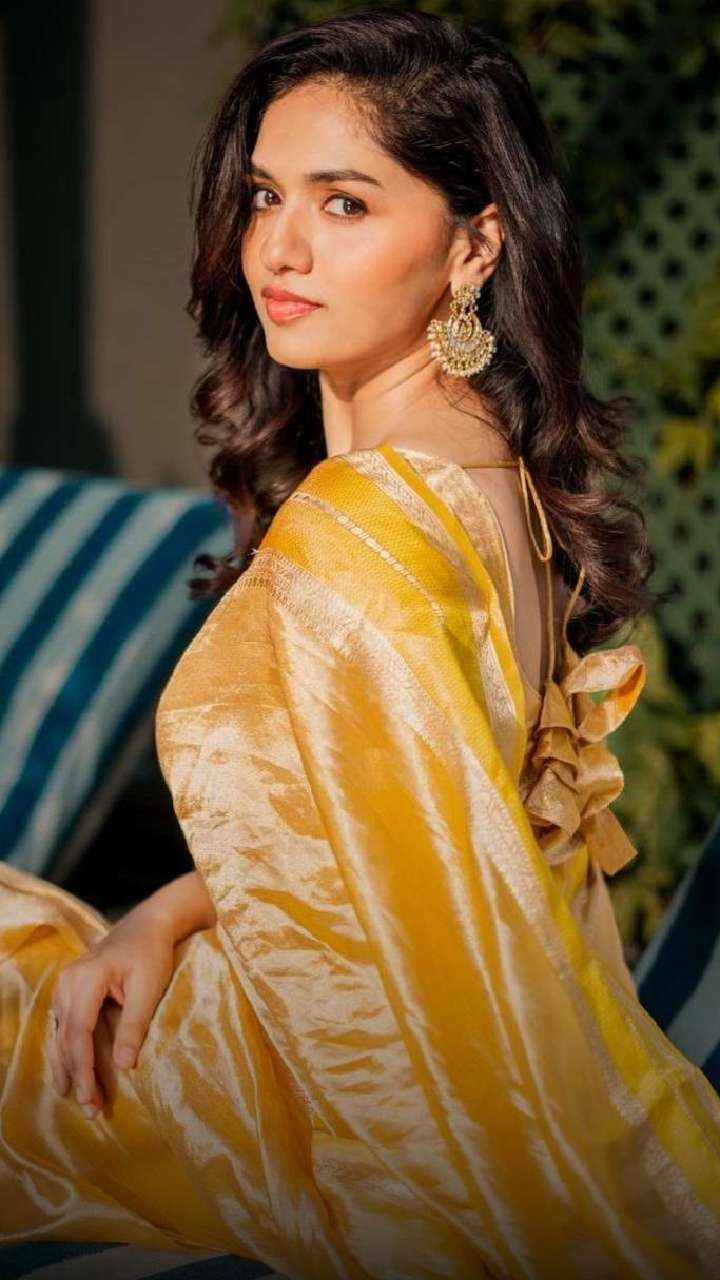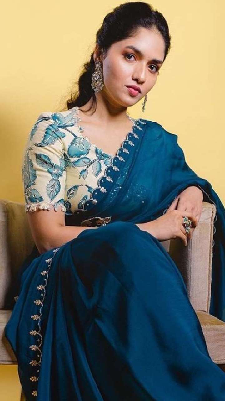 For a glamorous look, choose a dori blouse design from Sunaina’s closet. She completed this look with statement earrings.