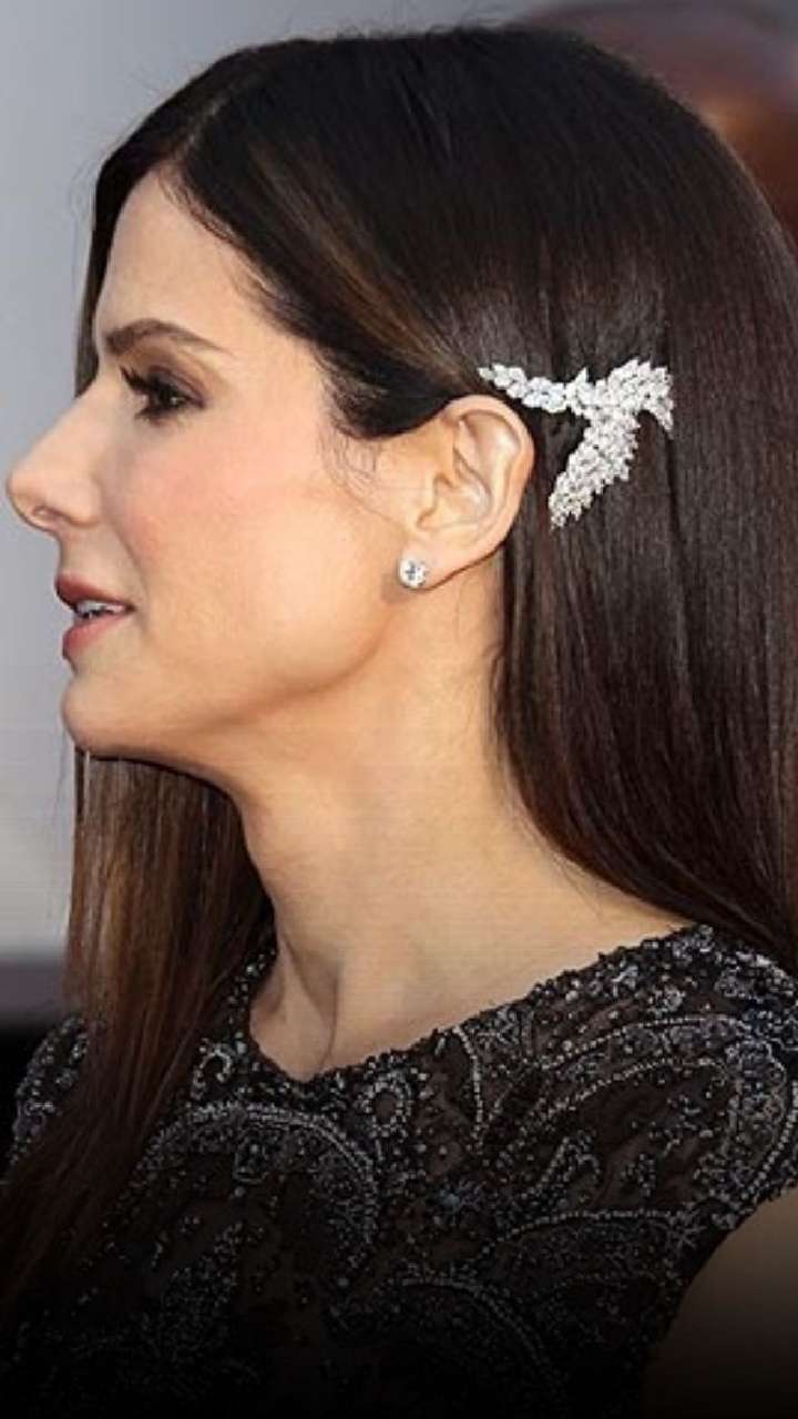 Glam up your straight sleek hair with a statement brooch near the crown.