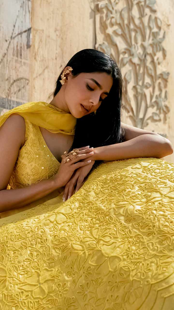 Aishwarya Lekshmi looks haldi ready in this yellow lehenga set.