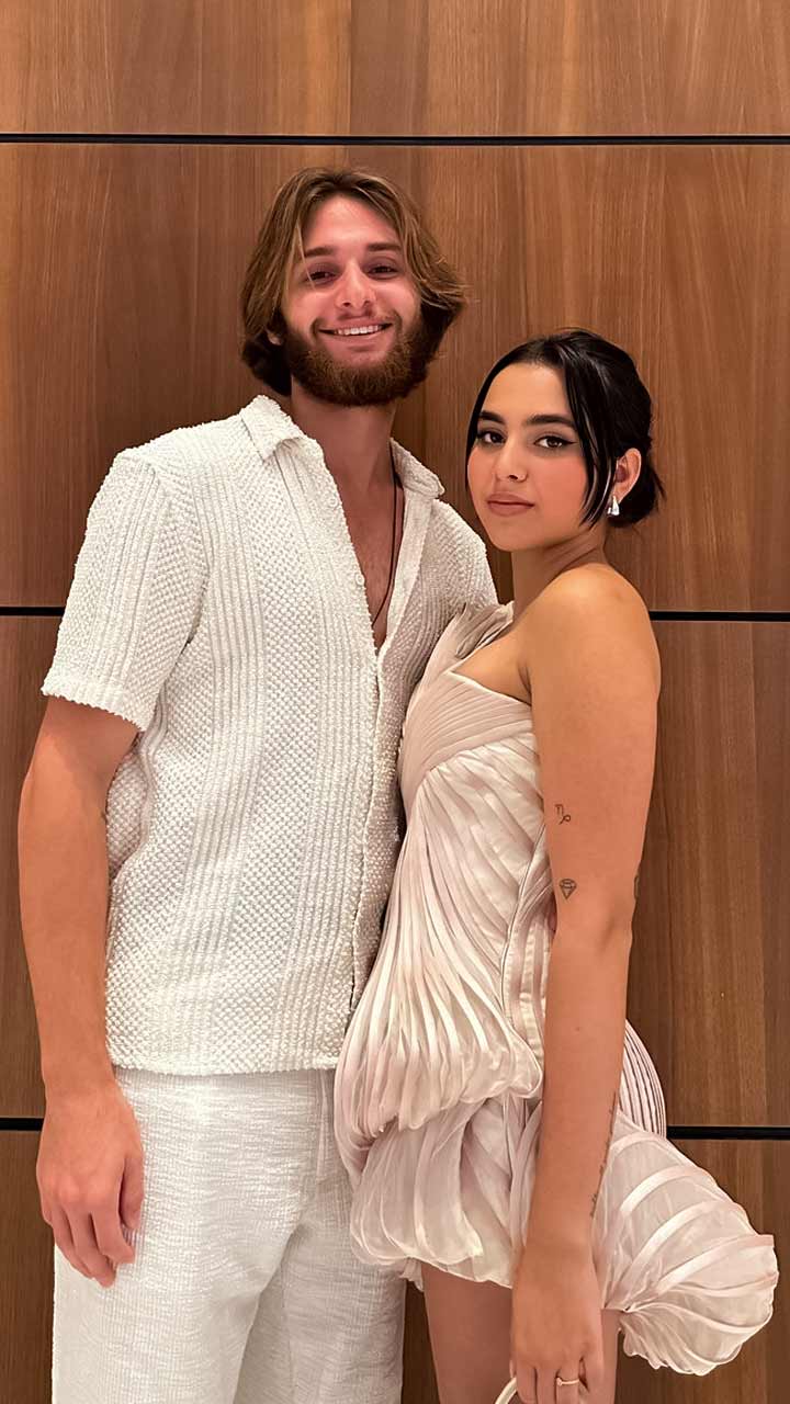 Posing with her boyfriend Shane, Kashyap wore a stunning metallic pink asymmetrical dress. She teamed the look with a bun and flaunted her mini tattoos.