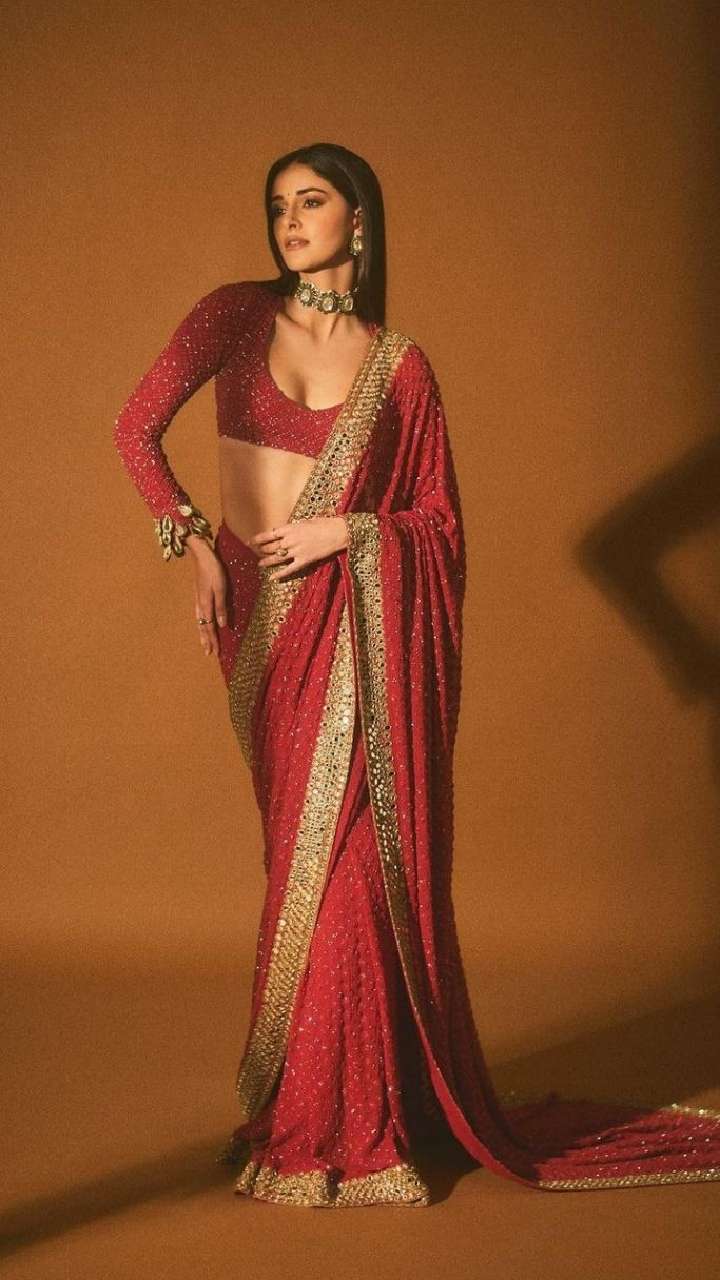 Ananya Panday often serves her fans with chic and sizzling looks. The actress is not only good at styling western dresses but also has a nice collection of sarees in her closet. Check it out here!