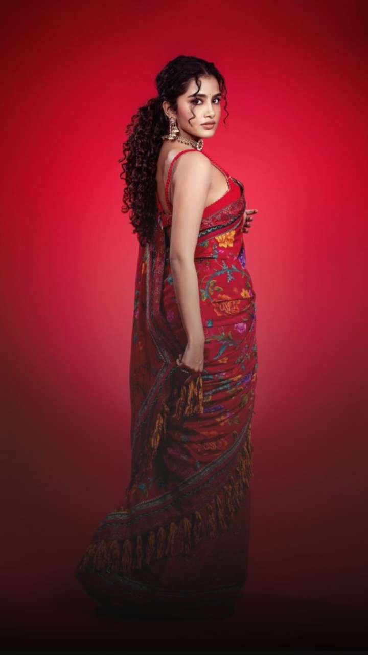 We cannot stop crushing over this dark-hued sare inspired by Anupama. We love how the actress amped up the look with a sleek bun for a snatched look.