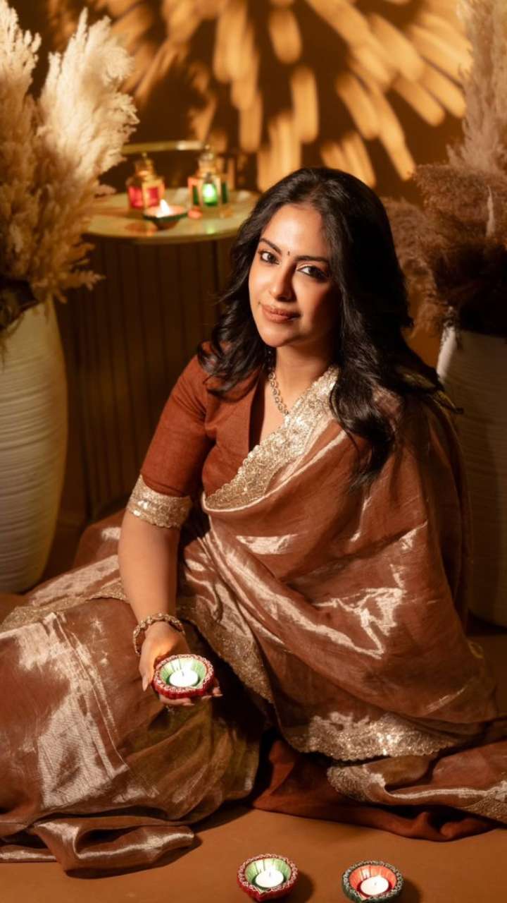 Opt for beautiful loose curls with your ethnic dress. Complete your look with nude makeup to exude charm.