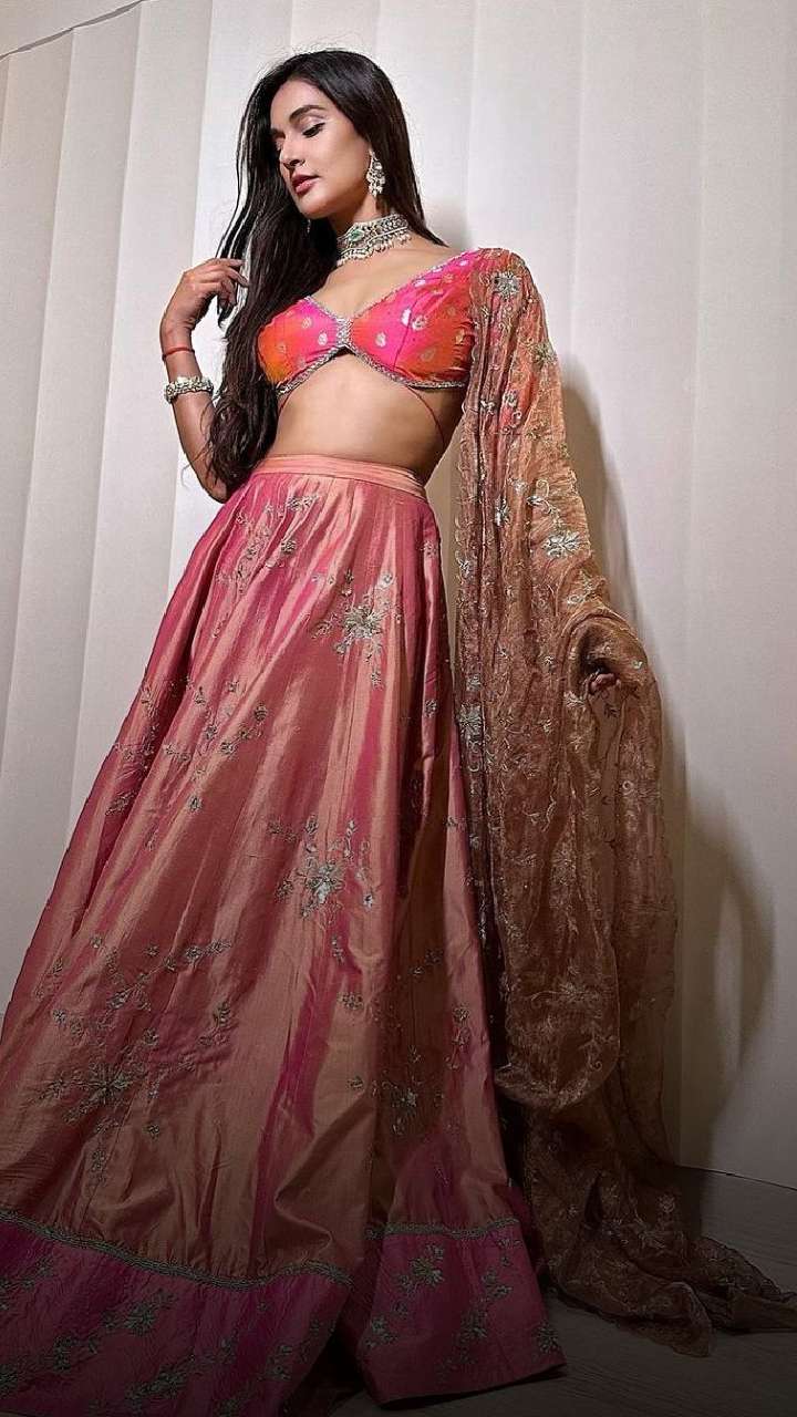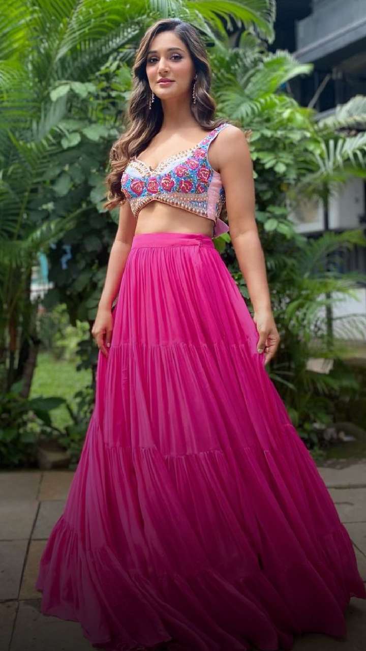 The actress wore a magenta lehenga set with a floral embroidered cut-sleeved blouse. This outfit is perfect for all Gen-Z divas.