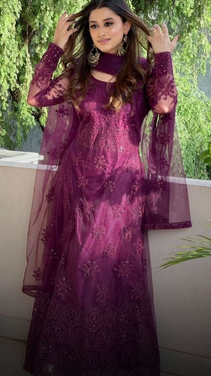The popular social media star donned this purple-coloured gharara set that comes with elegant detailing. If you want to try something unique, you can elevate your look with this outfit.