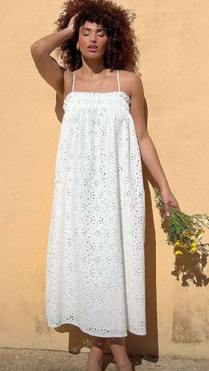 White will never go out of fashion. The off-white maxi dress is looking breezy and is a chic choice for summer. Opt for minimal makeup and leave the tresses open or make a messy bun to beat the heat.