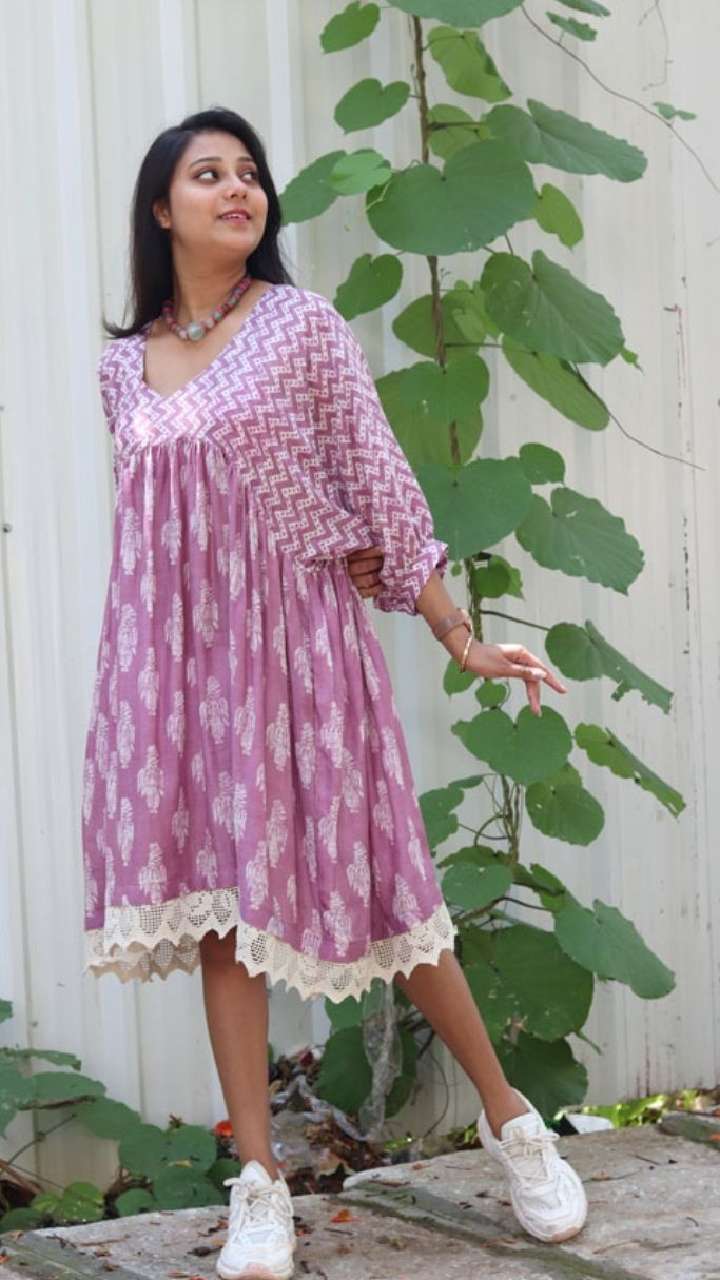 It's a bohemian floral dress. Complete this look by leaving your mane open. Also, opt for minimal jewellery and nude makeup. It is perfect for a day outing with your BFF.