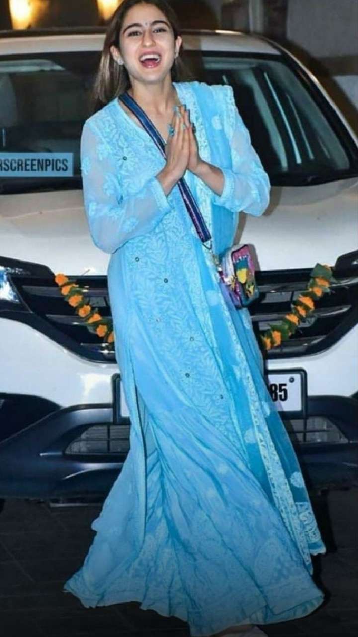 ‘Gaslight’ actress exuded charm in a blue three-piece chikankari palazzo suit set. She skipped the accessories to keep her look minimal and elegant.